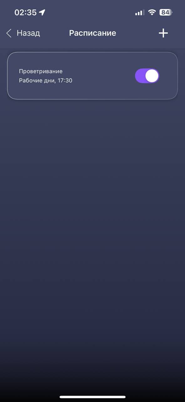 Нажав на кнопку с изображением прибора, попадаем на главный экран. Он же — «пульт управления» вентилятором. Тут можно сделать все те же действия, что позволяет нам панель управления на приборе и пульт ДУ. Мы их проверили, они срабатывают, поэтому останавливаться здесь не видим причин. Алиса интересует нас в первую очередь как голосовой помощник и мы хотим проверить ее в этом качестве.