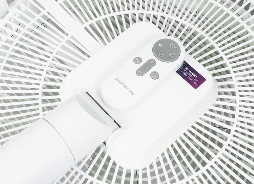 Polaris PSF 4025 Wi-Fi IQ Home — напольный вентилятор с претензией на роль «умного» помощника. В его арсенале — двенадцать скоростей, три сценария работы (обычный, естественный, ночной), автоматический поворот на 120° и регулировка наклона до 90°.