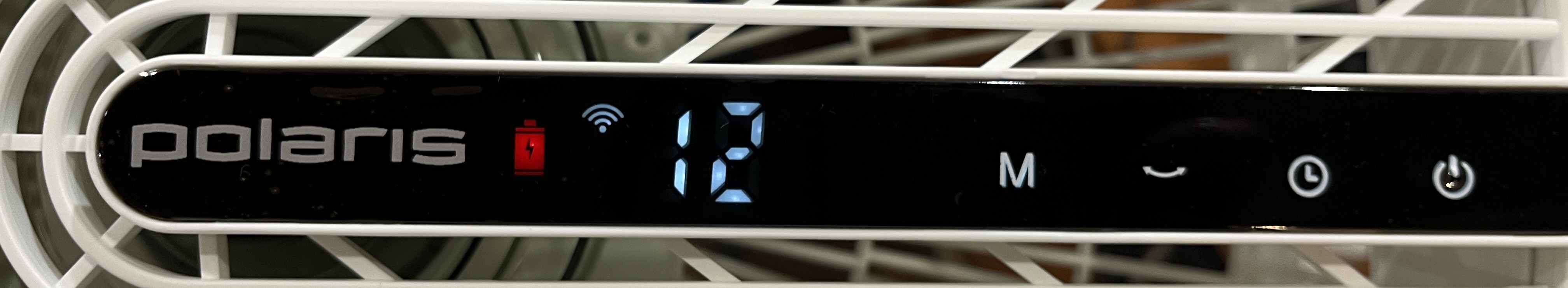 Когда вентилятор подключен к питанию на дисплее постоянно горит красный значок с изображением аккумулятора. Также данный индикатор загорается, когда вентилятор работает от аккумулятора и на нем осталось менее 50% заряда.