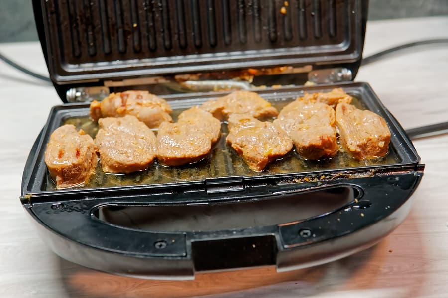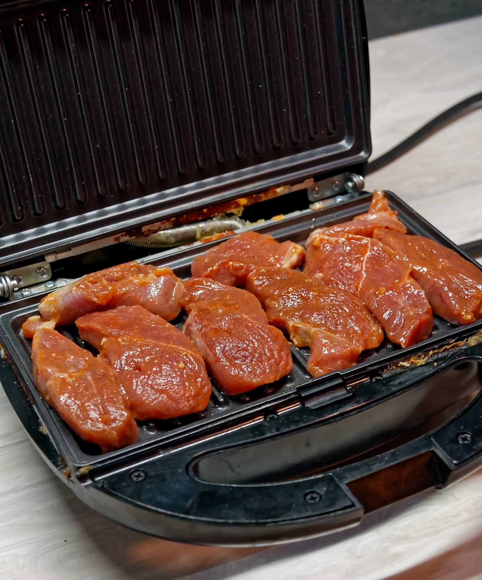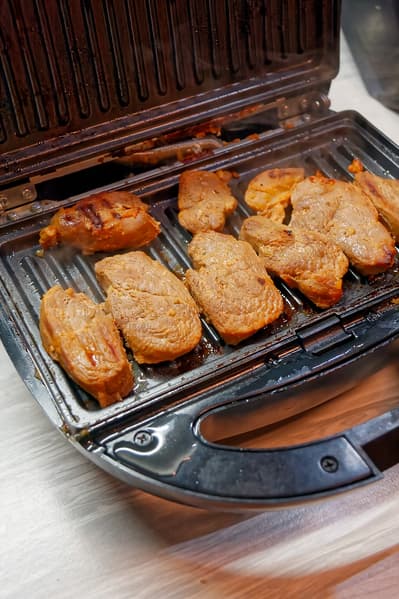 Отметим, что при приготовлении мяса выделяющийся сок остается в приборе, поэтому продукт скорее варится или парится, а не поджаривается. Единственное решение, которое пришло нам в голову — удалить сок с помощью салфеток или тряпок, сопряжено с возможностью обжечься.