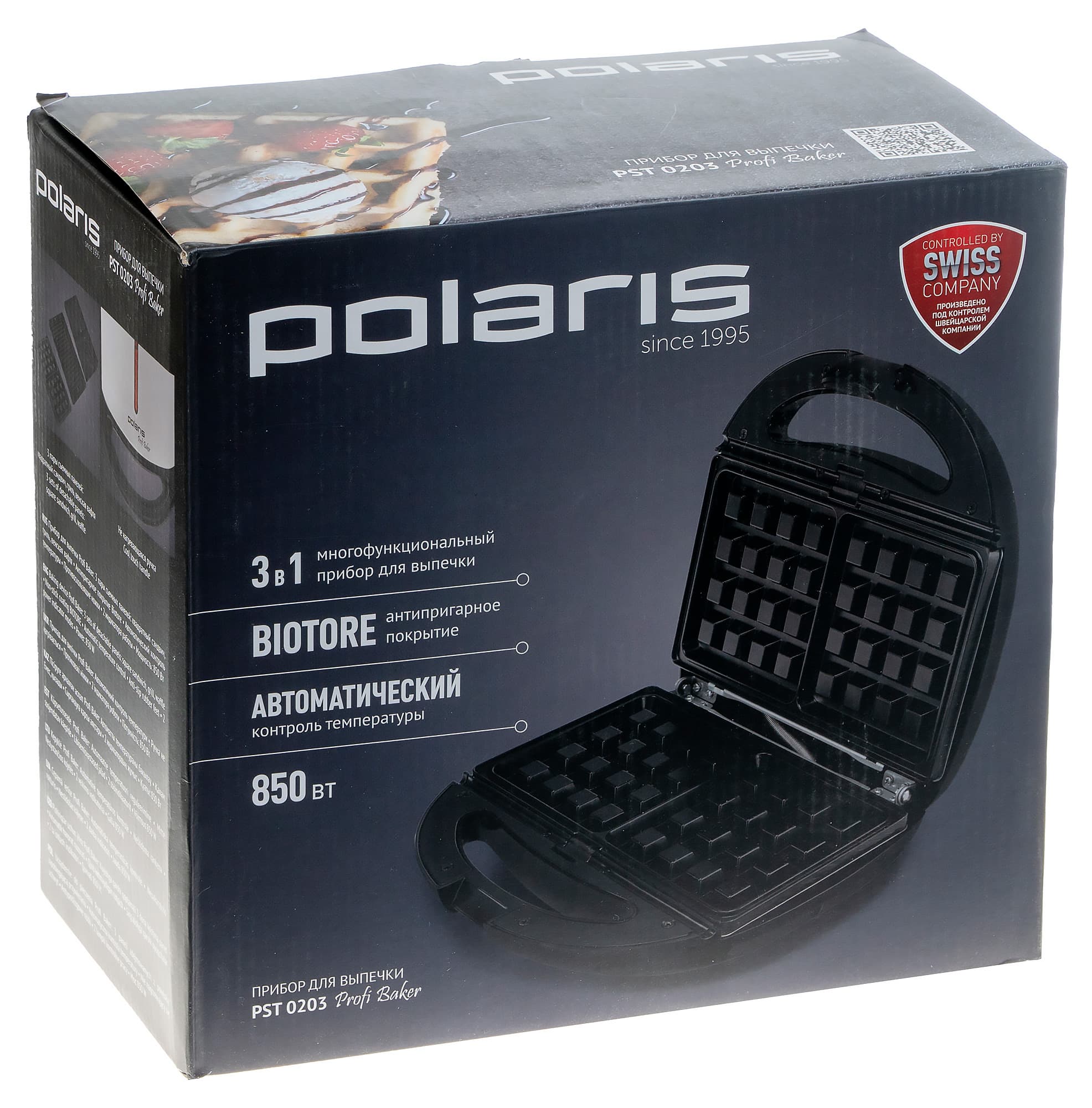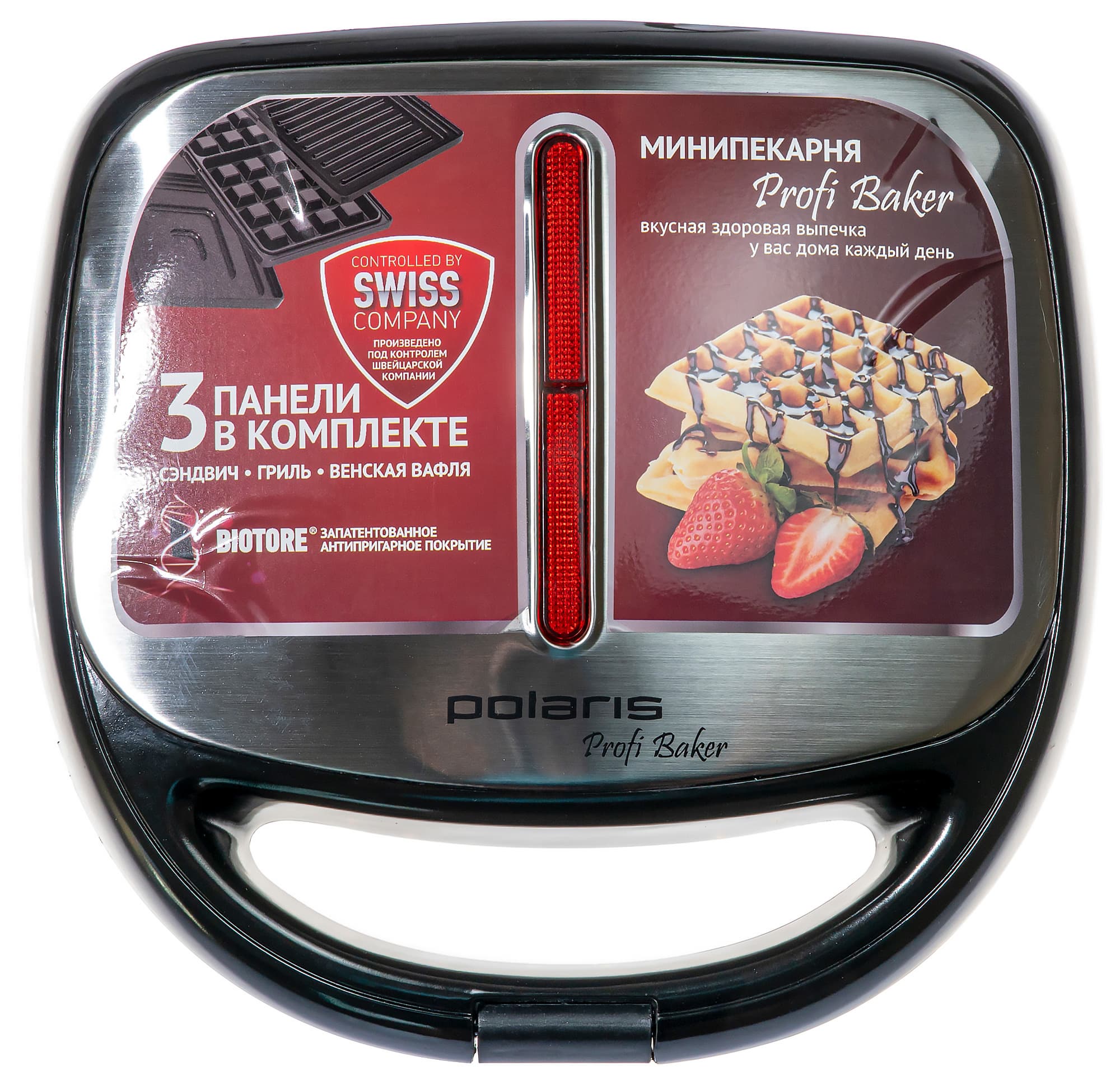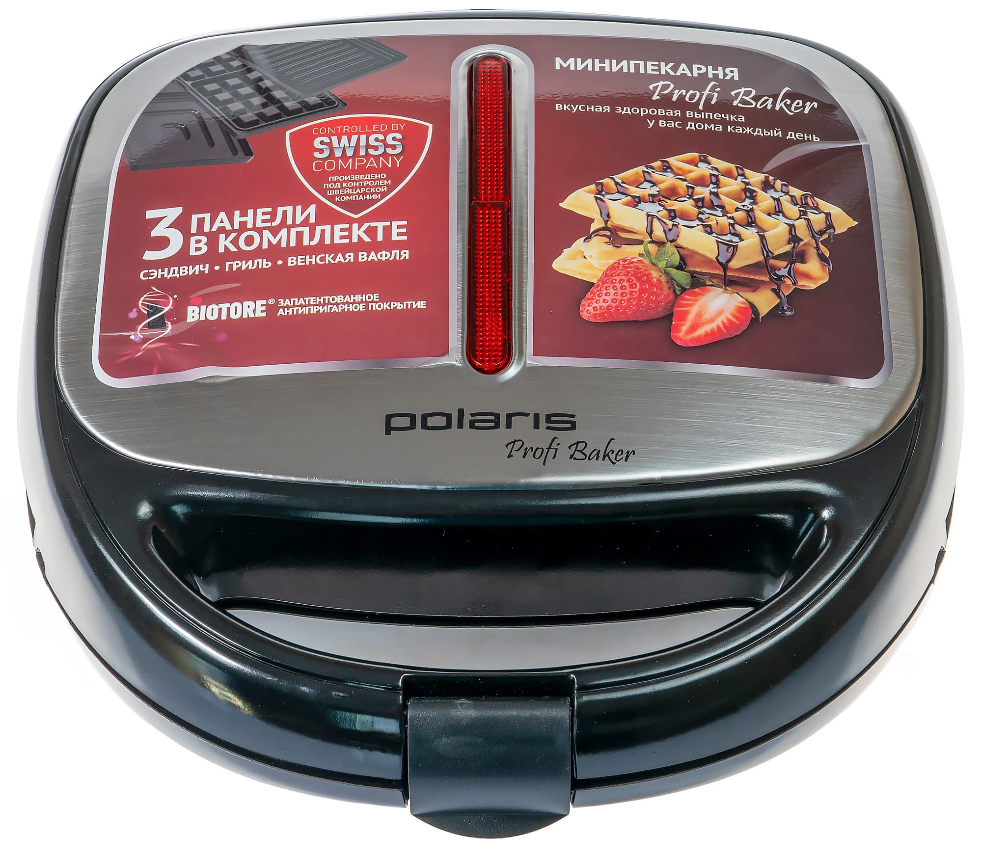 Минипекарня (вафельница, сэндвичница) Polaris PST-0203 — это простой прибор, предназначенный для приготовления вафель, горячих бутербродов и прочих горячих блюд небольшого размера. Ключевые достоинства данного прибора — три комплекта сменных панелей: для вафель, горячих бутербродов и гриля. На полноценный гриль, конечно, данное устройство не тянет. Зато может носить гордое название «вафельницы» или «бутербродницы».
