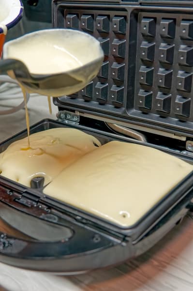 Налил чуть больше теста, чем нужно? Оно вытекает на рабочую поверхность, попутно испачкав корпус прибора и провод питания (а очистка провода питания, спрятанного в металлическую оплетку — та еще задача!)
