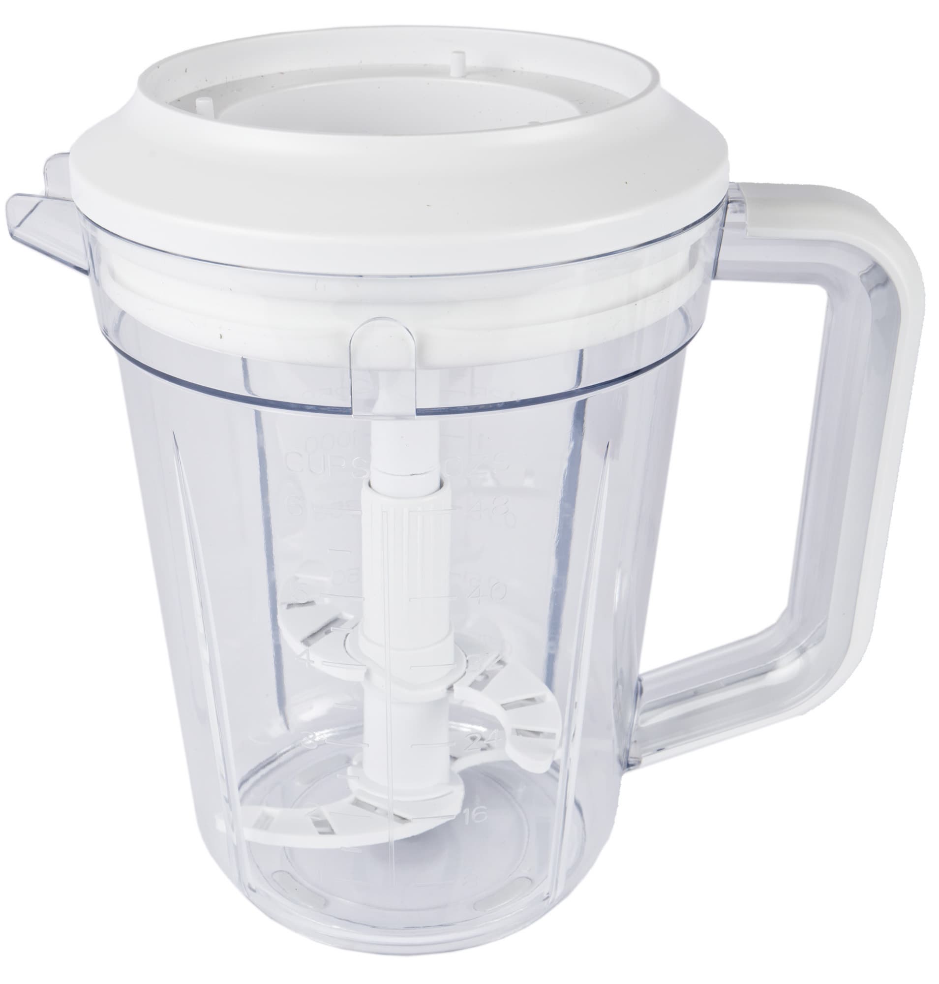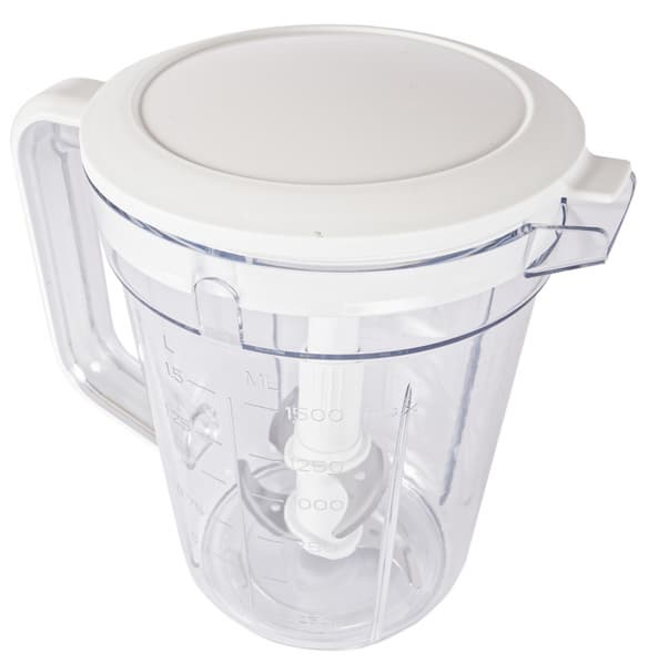 Кувшин позволяет хранить приготовленные блюда и полуфабрикаты в холодильнике прямо в емкости. Для этого нужно лишь заменить моторный блок с фиксатором на крышку. Крышка плотно фиксируется на чаше путем совмещения углублений по периметру с выступами на внутренней части кувшина.