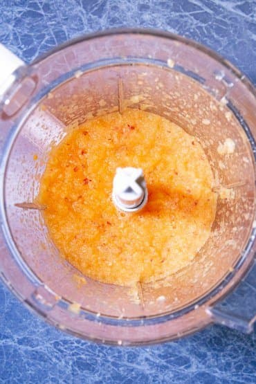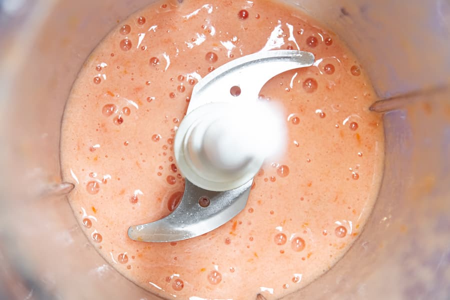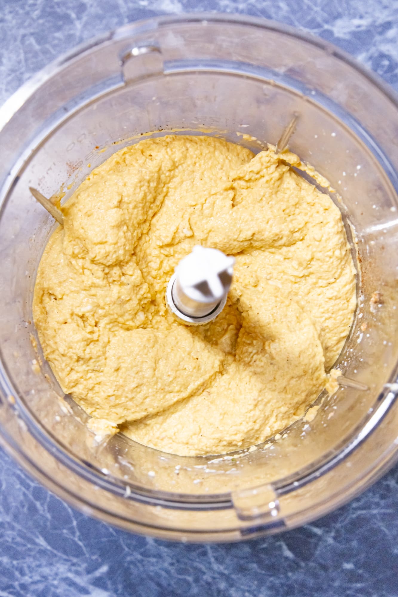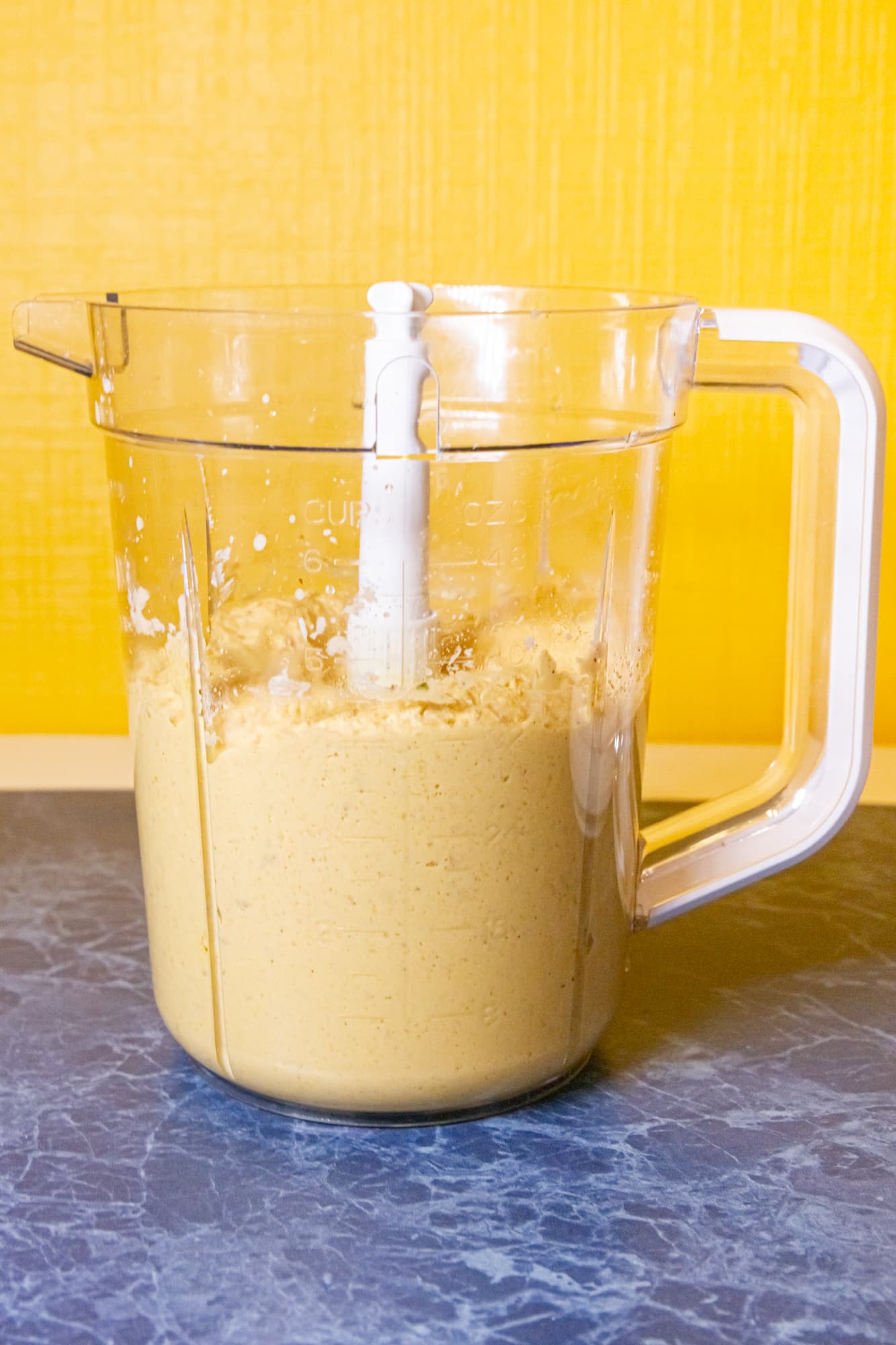 Включили блендер на 2-й скорости и обрабатывали продукты в общей сложности 1 минуту 40 секунд. Делали перерыв на 10 секунд, чтобы снять со стенок небольшое количество налипших продуктов.