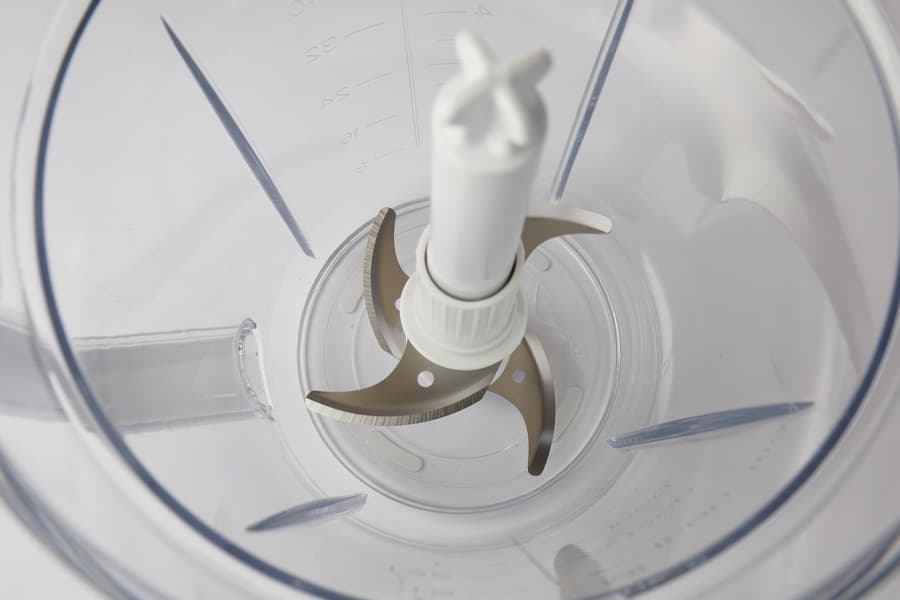На дне есть информация об изготовителе и штрих-код с серийным номером. Посередине — пластиковая деталь, соединяющаяся с крестообразным штырем, на котором держатся ножи.
