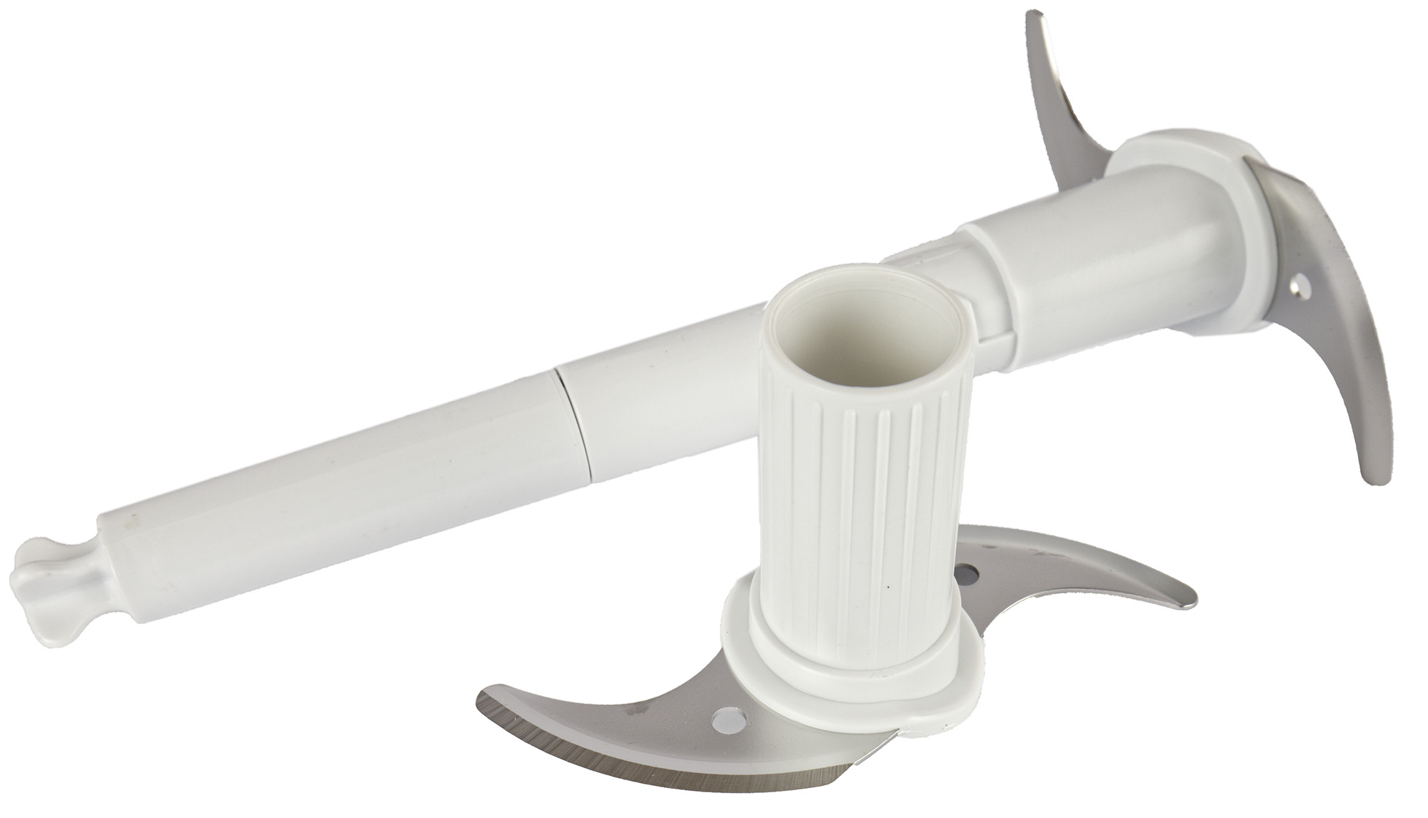Ножи из нержавеющей стали расположены в два уровня, что призвано обеспечить особенно эффективную обработку продуктов. На время хранения на ножи надеваются защитные пластиковые чехлы.
