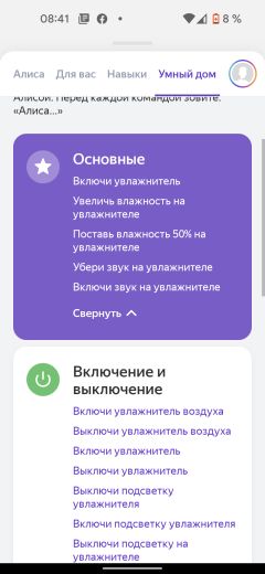 Протестировали мы и работу увлажнителя с голосовым помощником Яндекса.