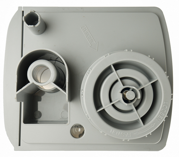 Резервуар для воды сделан из полупрозрачного пластика, позволяющего, хоть и не без труда, контролировать уровень жидкости.