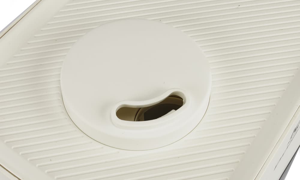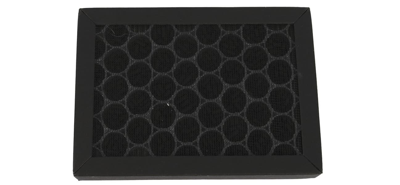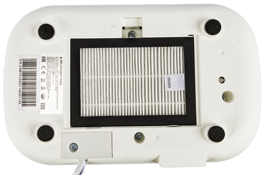 Также снизу под крышкой, закрывающейся на защелку, находится комбинированный воздушный фильтр, состоящий из HEPA-фильтра и угольного фильтра, заполненного шариками.