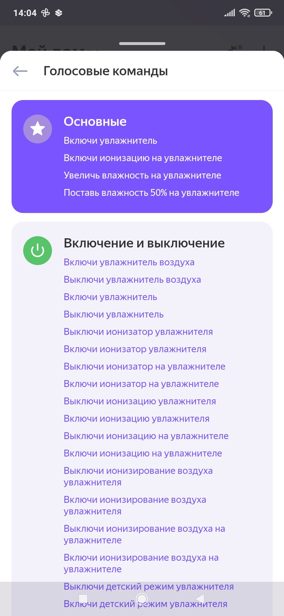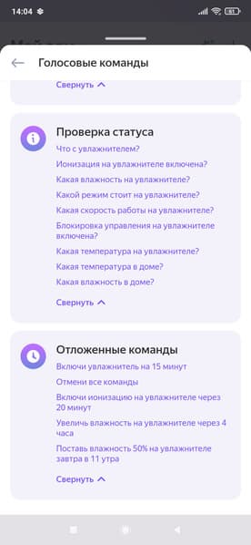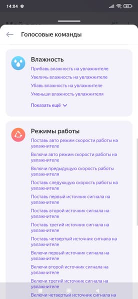 Список голосовых команд при этом оказался вполне стандартен.