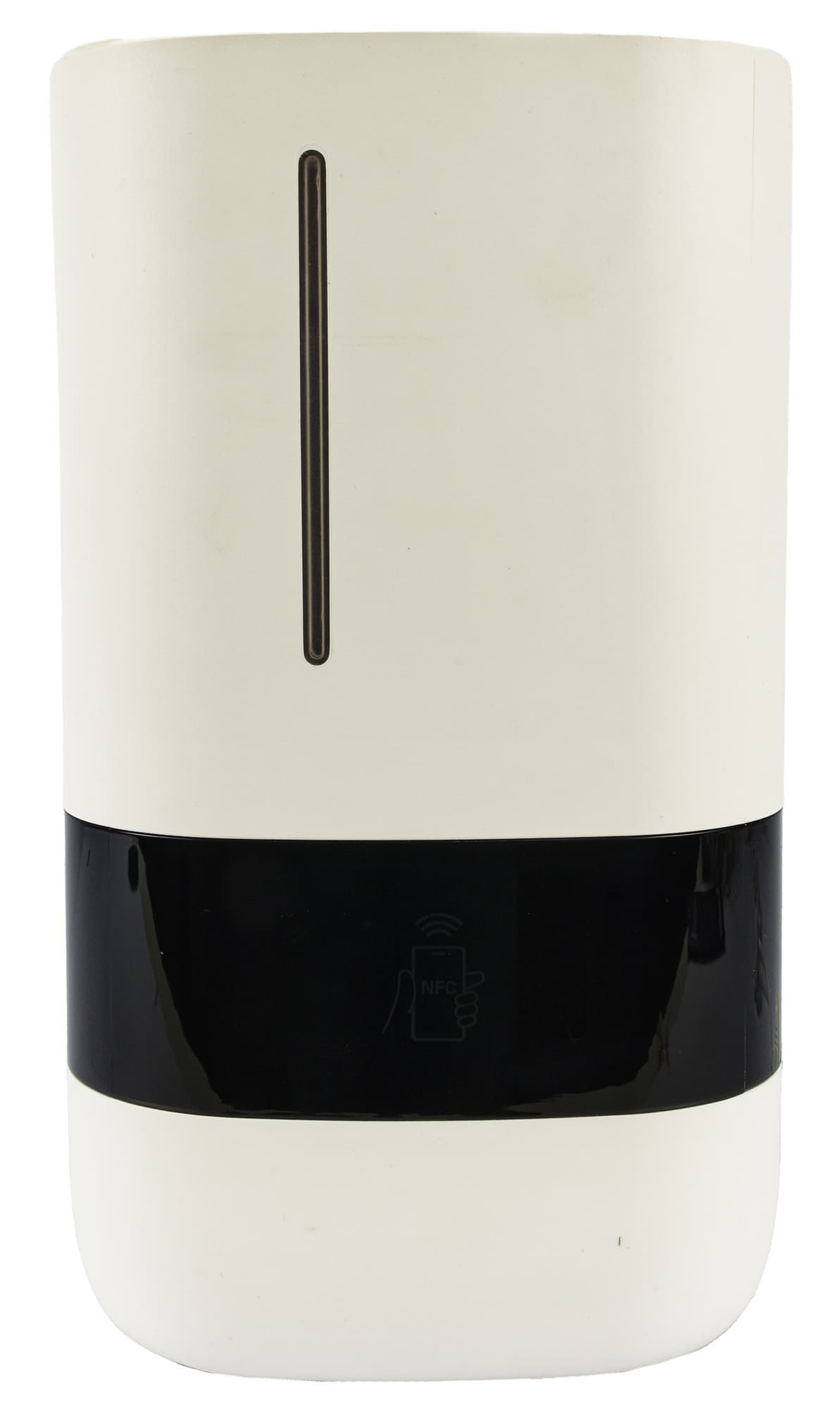 На передней и боковых гранях выделяется черная глянцевая вставка — на ней размещены сенсорные кнопки управления и LED-дисплей. В выключенном состоянии на левой грани видны иконки кнопок. Спереди — рисунок со смартфоном и подписью NFC, а также вертикальное прозрачное окошко для контроля уровня воды.
