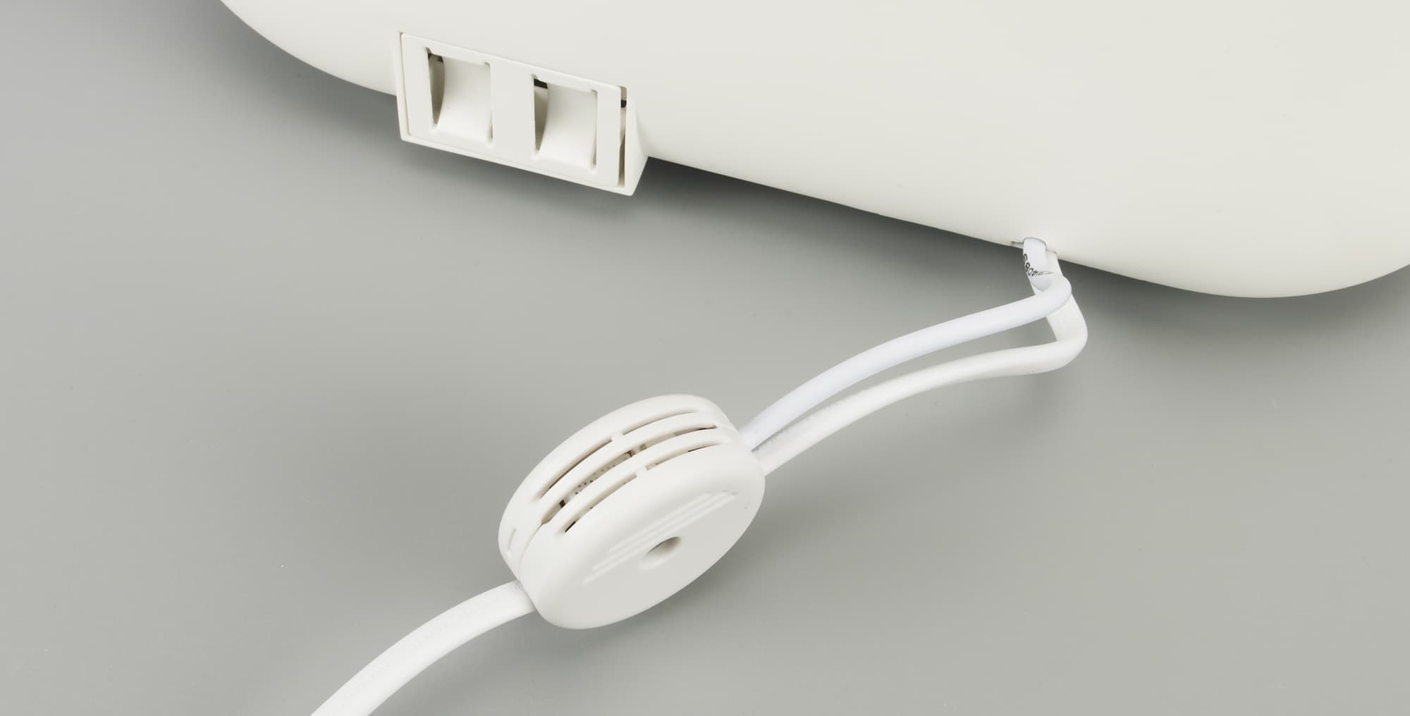 Также с правой стороны выходит шнур питания, на котором закреплен гигрометр, измеряющий влажность в помещении.