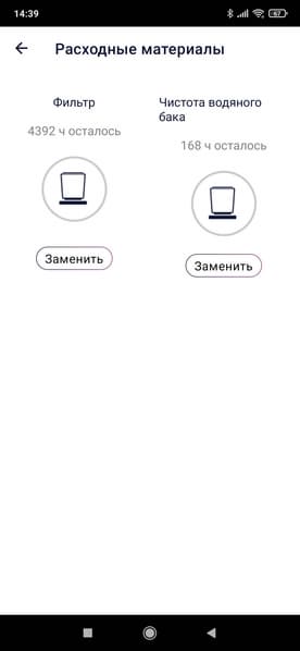 Сюда имеет смысл заглядывать разве что чтобы узнать оставшийся ресурс фильтра, а также — определиться с тем, не пора ли почистить бак для воды.
