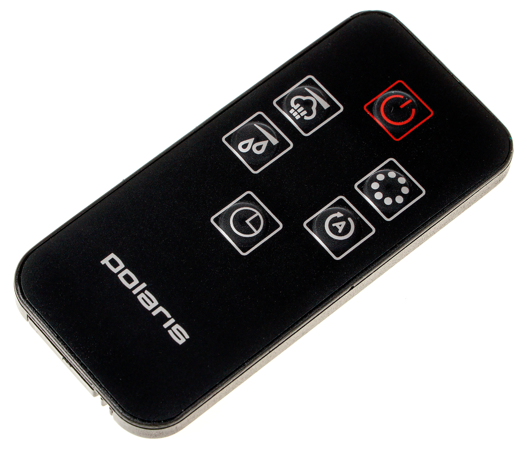 Увлажнитель комплектуется инфракрасным пультом дистанционного управления с шестью кнопками — пять кнопок на пульте дублируют кнопки на самом приборе: включение/выключение, выбор скорости подачи пара, установка уровня влажности/включения ночного режима, включение установка таймера автоотключения, включение/отключение режимов теплого пара и ионизации воздуха). Нажатие на шестую сбрасывает все установки прибора и активирует автоматический режим.