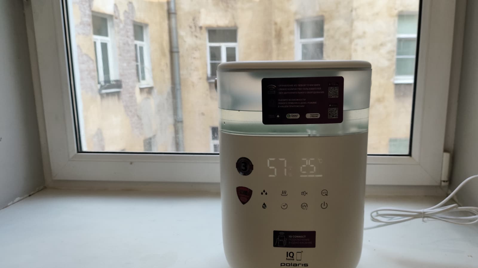 Попавшая к нам на обзор модель Polaris PUH 6060 Wi-Fi IQ Home обещает практически весь спектр возможностей, в том числе точный замер влажности в помещении благодаря внешнему датчику. Давайте взглянем на прибор и проверим его в деле.