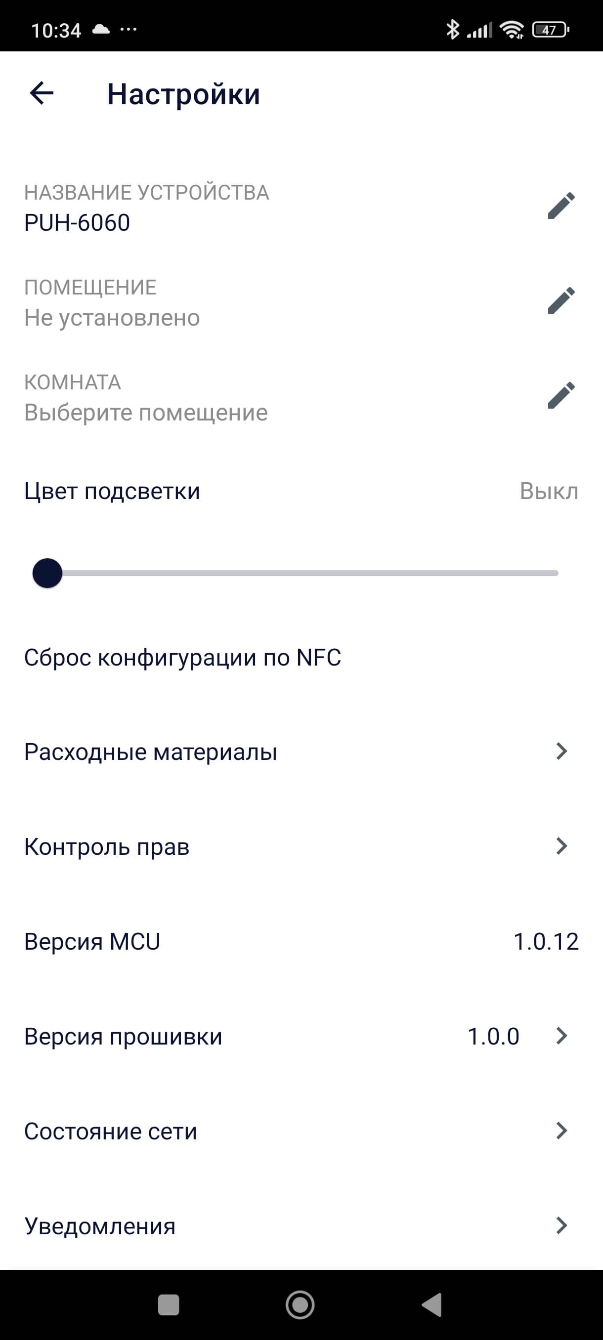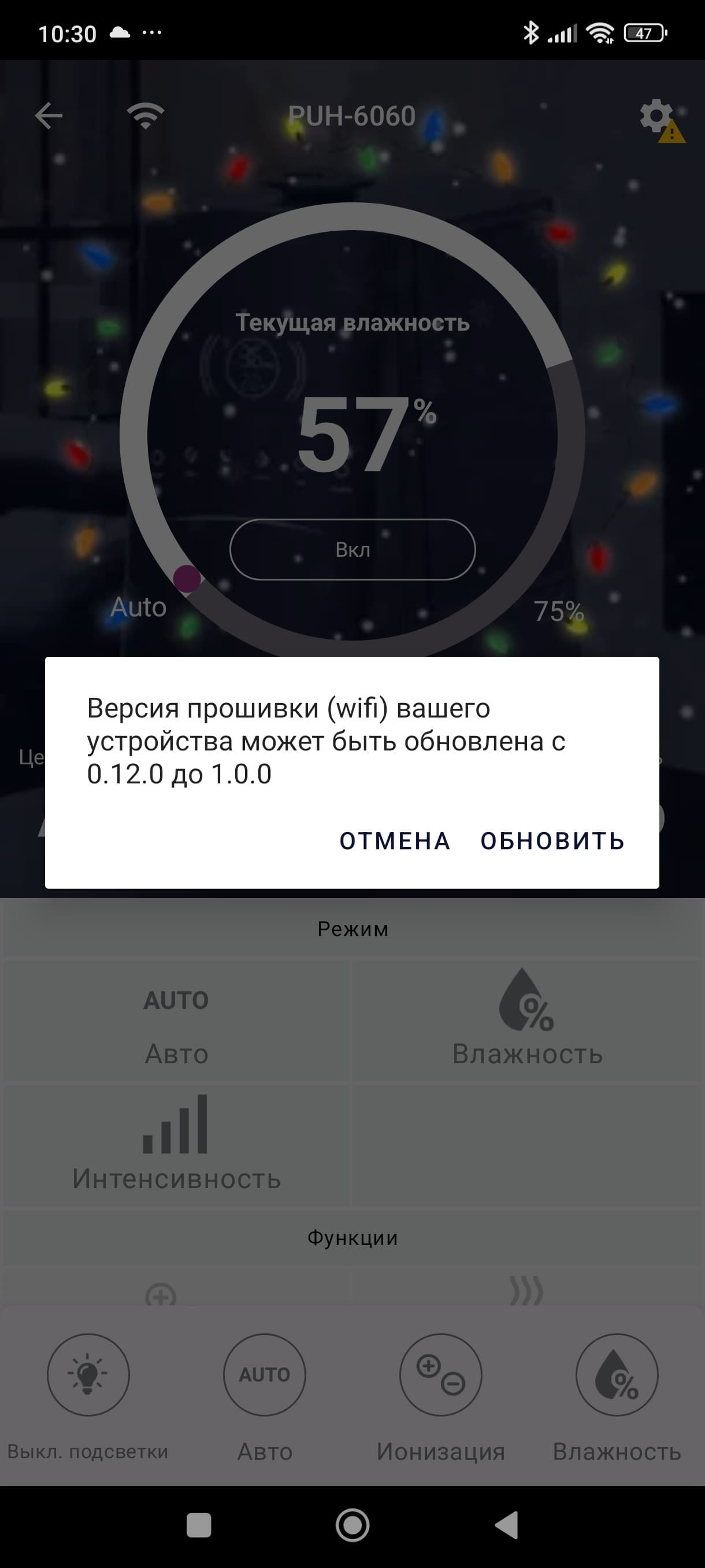 При первом запуске приложение предложило нам обновить прошивку устройства.