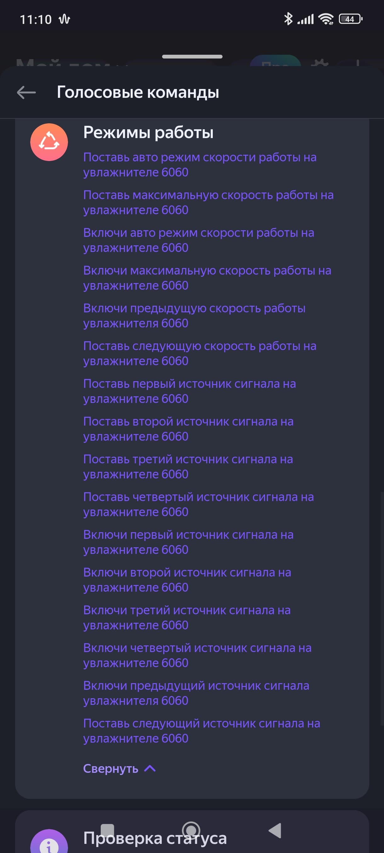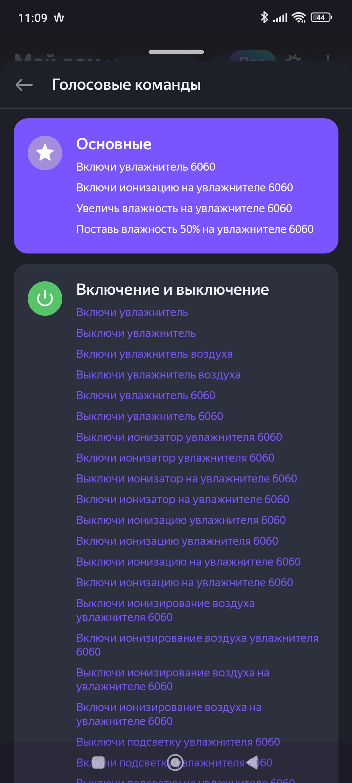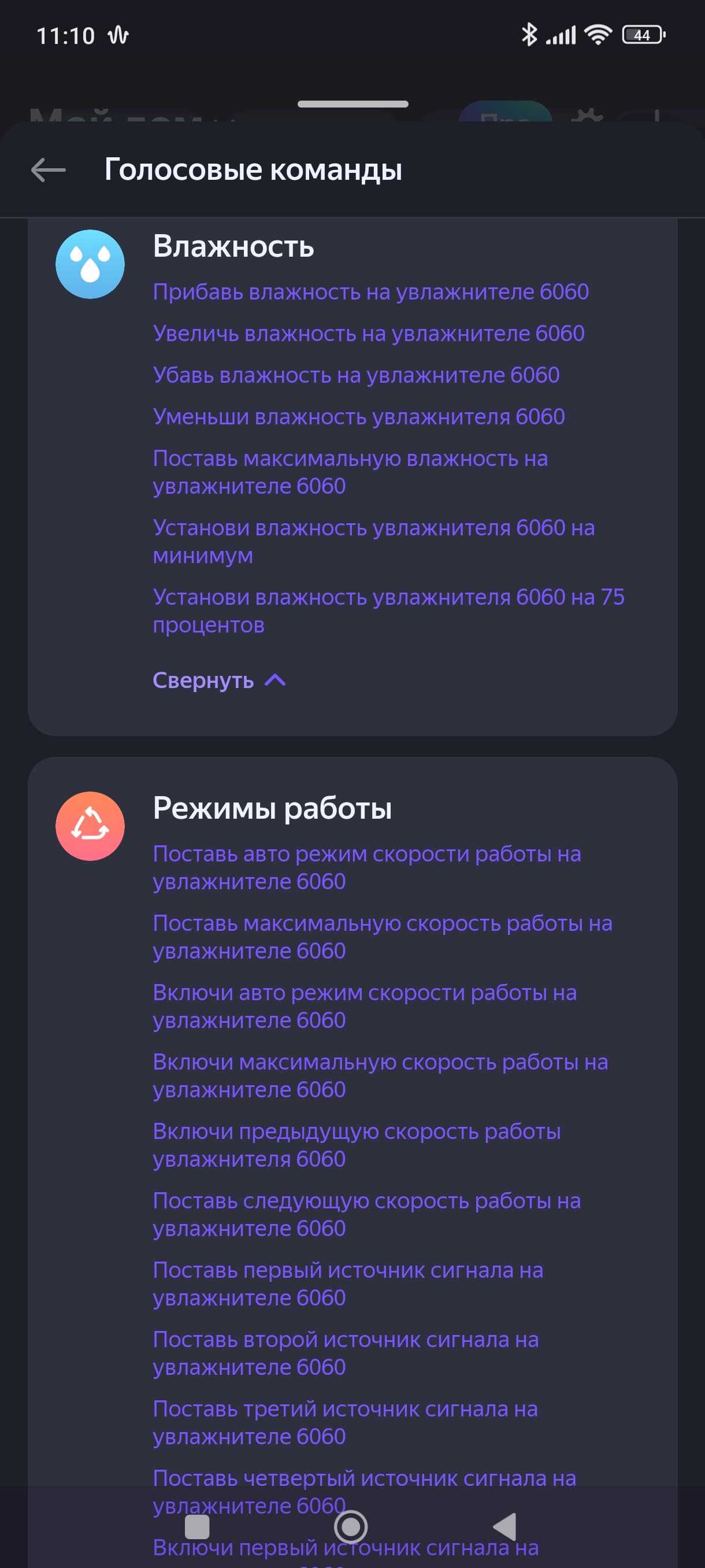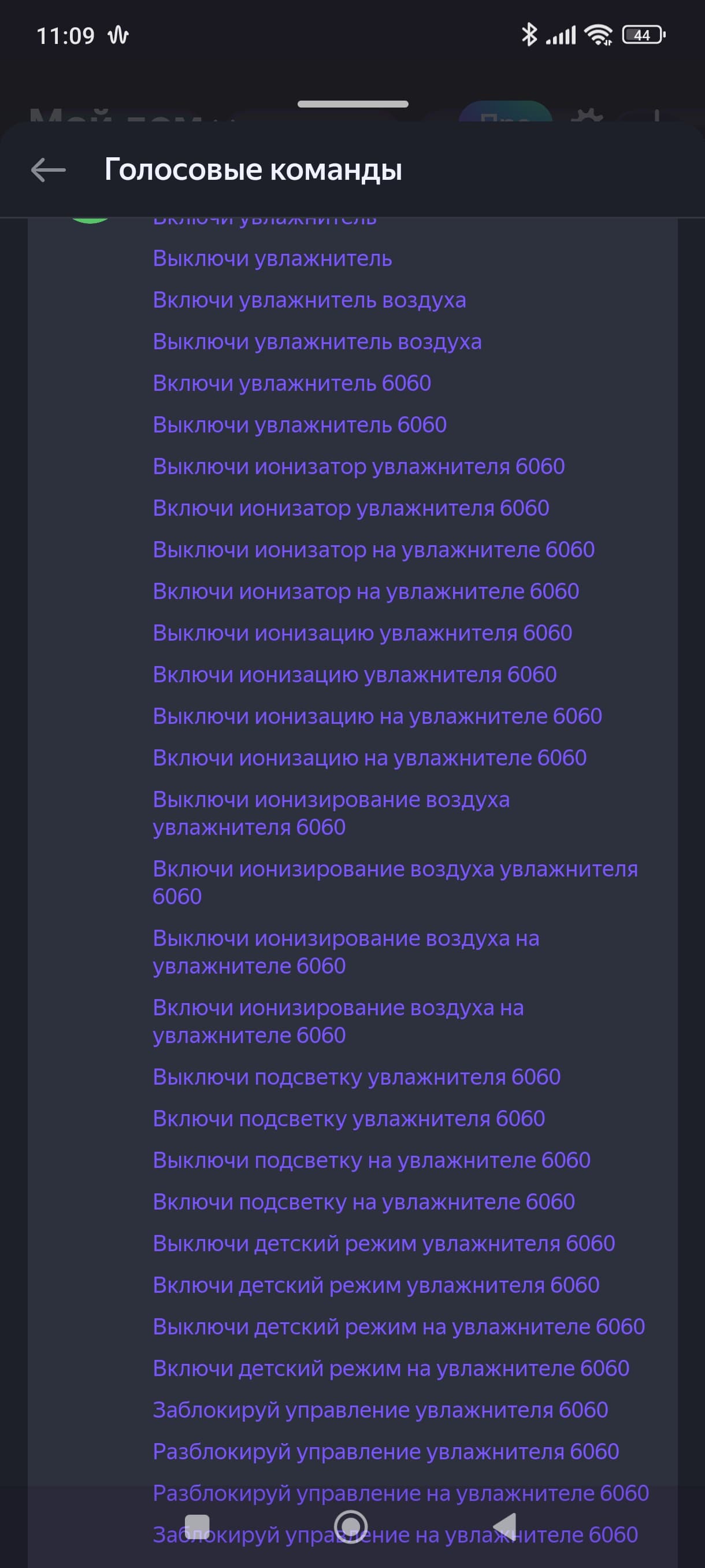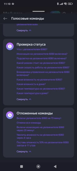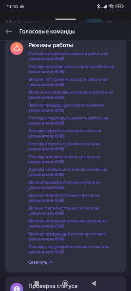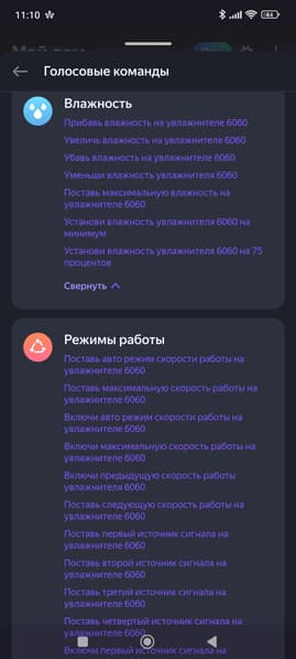 Список голосовых команд при этом оказался вполне стандартен.