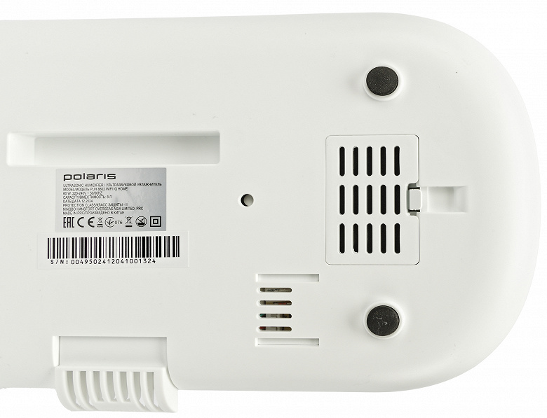 Бак для воды у нашего увлажнителя устанавливается сверху. Съемная крышка бака имеет диффузор с тремя вытянутыми узкими отверстиями для выхода пара.