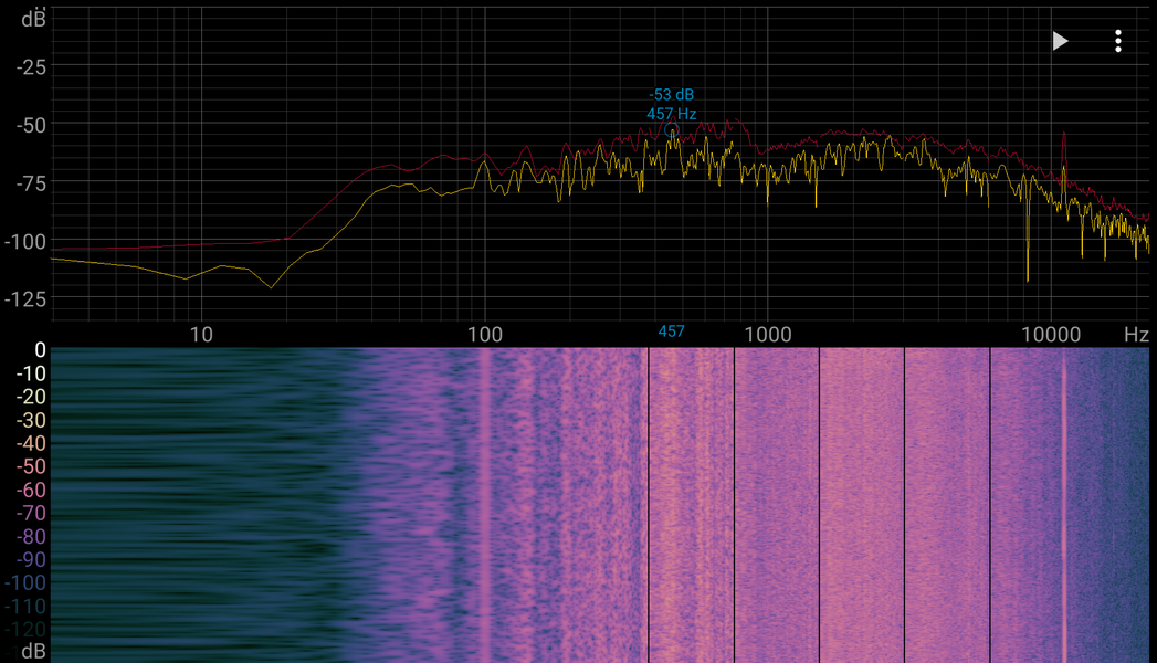 Издаваемый устройством шум ровный, на сонограмме не заметно выраженных пиков.