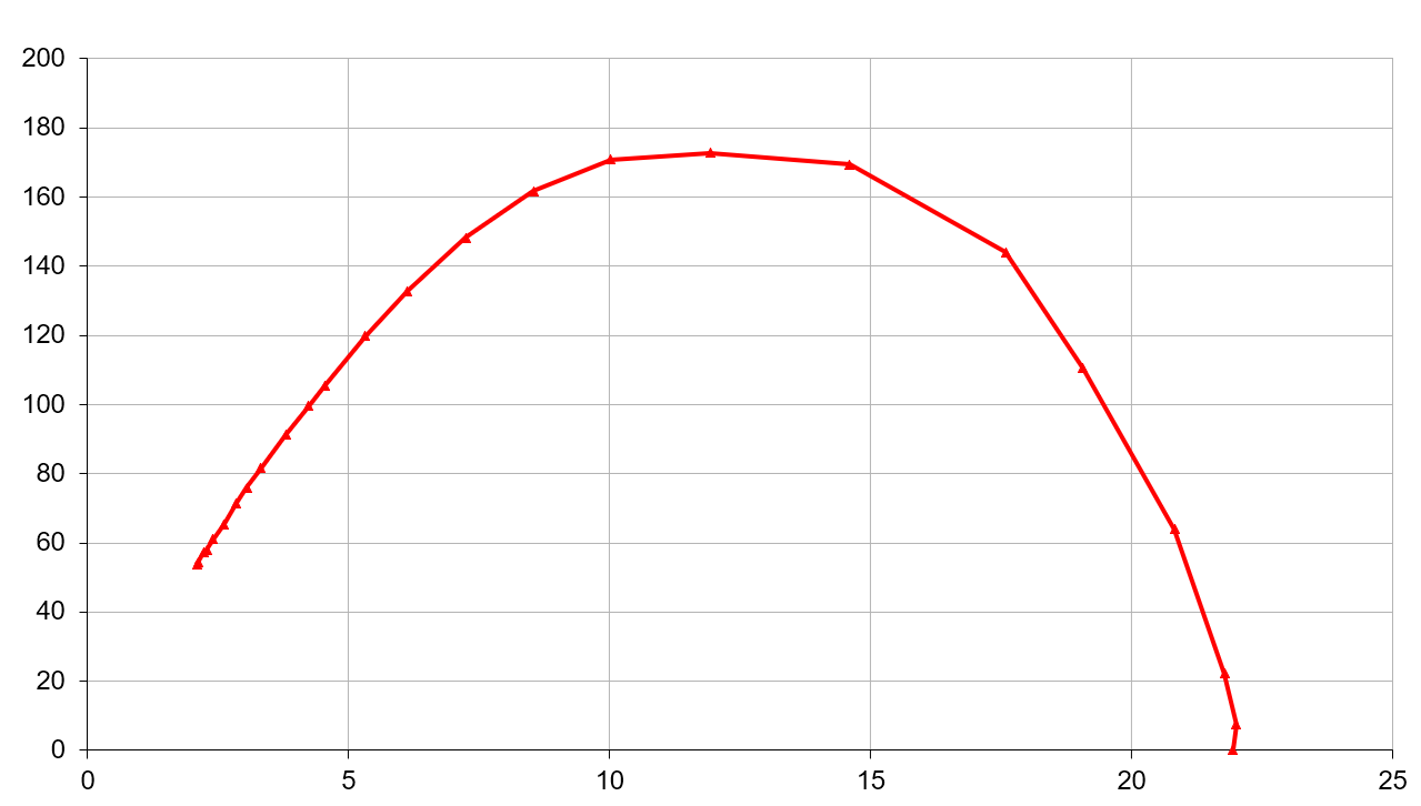 Мощность всасывания (что это такое и как мы ее измеряем, описано в отдельной статье) мы измеряли, подключив стенд к выходному отверстию гофрированного шланга (подключить измерительные приборы напрямую к моторному блоку оказалось проблематично из-за особенностей конструкции). Зависимость мощности всасывания от создаваемого разрежения приведена на графике ниже:
