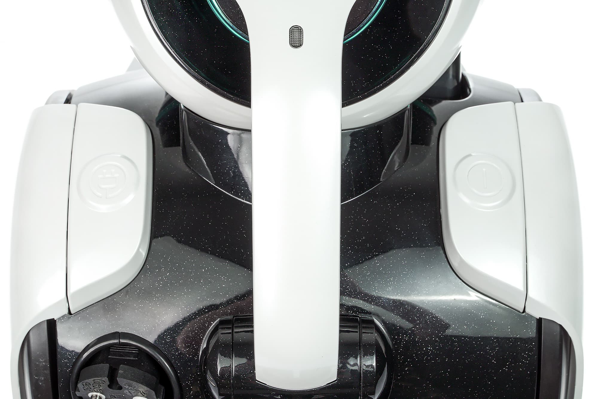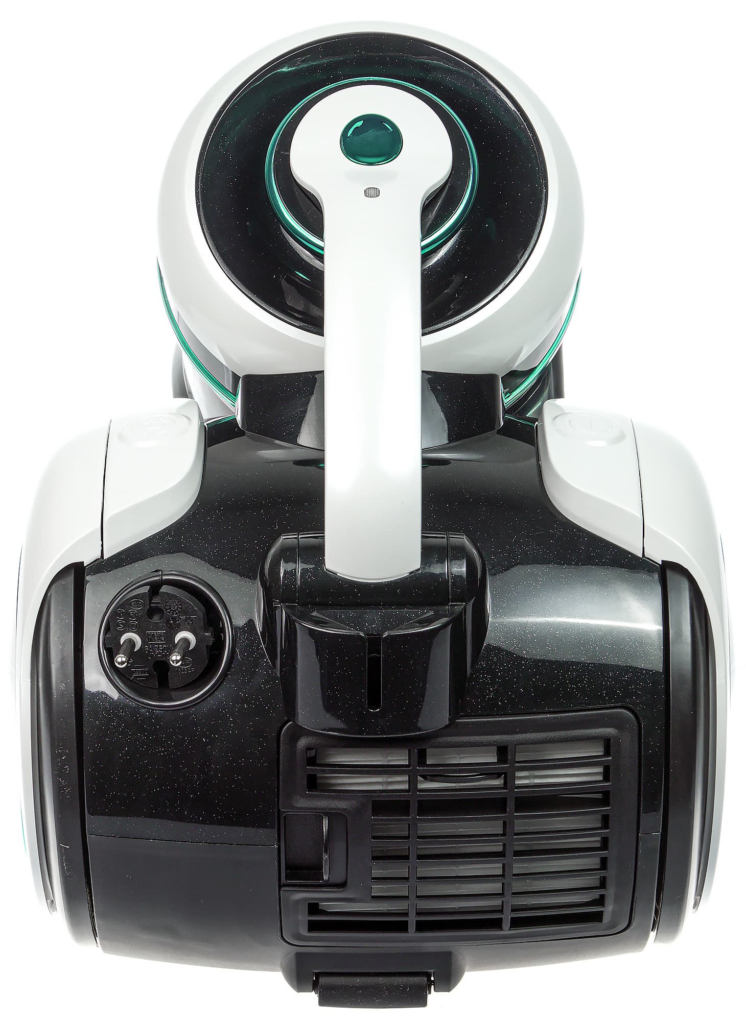 Над колесами пылесоса расположены две традиционные кнопки: одна включает и выключает устройство, вторая предназначена для сматывания шнура.
