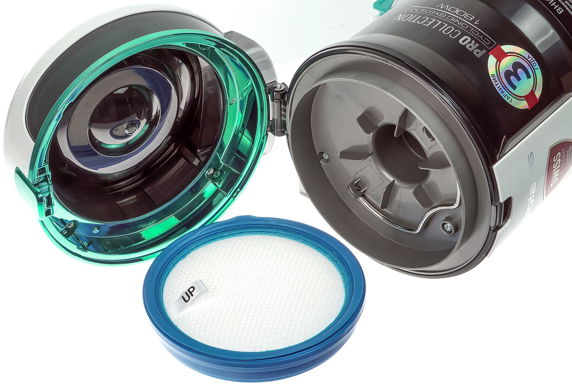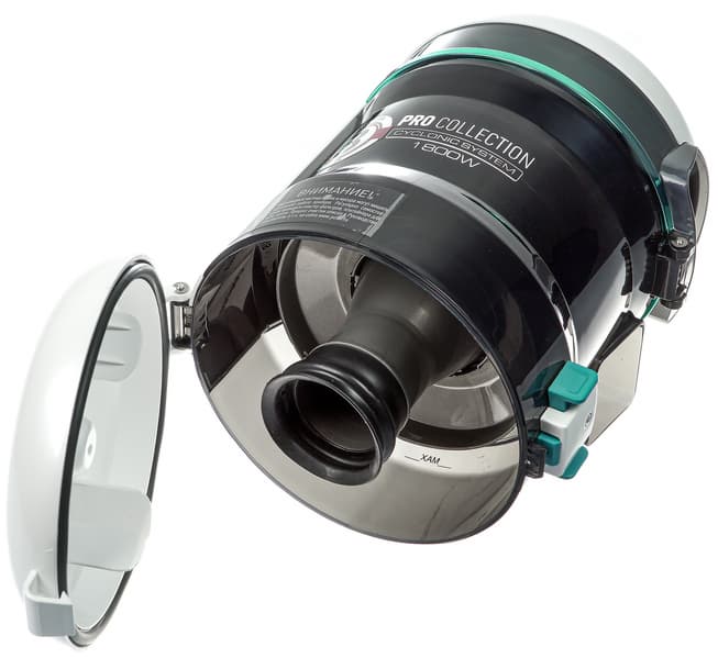 Конструкцию циклонного предварительного фильтра мы одобрили: он эффективно задерживает мусор крупных фракций, до фильтра тонкой очистки долетают только мелкая пыль и шерстинки.
