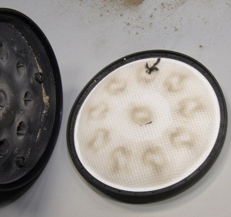 Предмоторный фильтр загрязнился умеренно — видимо, циклонный фильтр имеет хорошую эффективность даже по отношению к самой мелкой пыли.