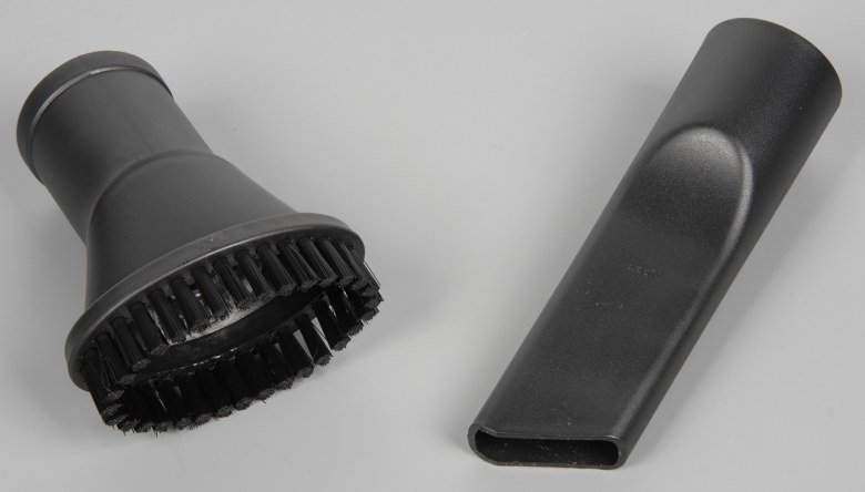 К пылесосу прилагается типичная щелевая насадка и овальная щетка с относительно жесткой щетиной.