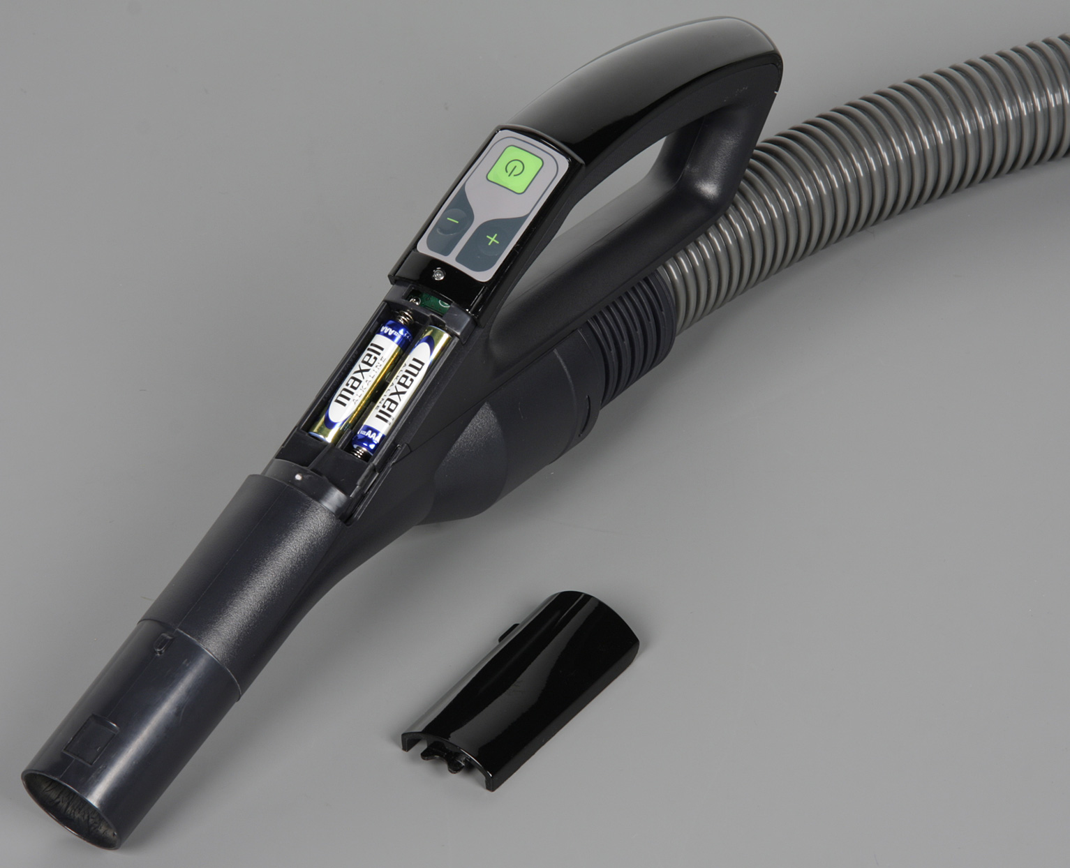 Кнопка питания на рукоятке включает и выключает мотор пылесоса. Первое включение с рукоятки устанавливает режим низкой мощности, далее текущий уровень мощности запоминается до отключения пылесоса от сети. Кнопки «+» и «−» переключают мощность с низкой на высокую и наоборот. Педаль на корпусе включает мотор пылесоса сразу на высокую мощность и выключает его. Вместо традиционного проводного управления используется передача сигналов по радиоканалу с автономным питанием передатчика. Соответственно, в рукоятке есть батарейный отсек, куда вставляются два элемента питания типа ААА. Такое управление надежнее и долговечнее проводного, так как при использовании проводов в шлангах они подвержены интенсивному механическому воздействию, вследствие чего часто переламываются, и управление с рукоятки перестает работать.