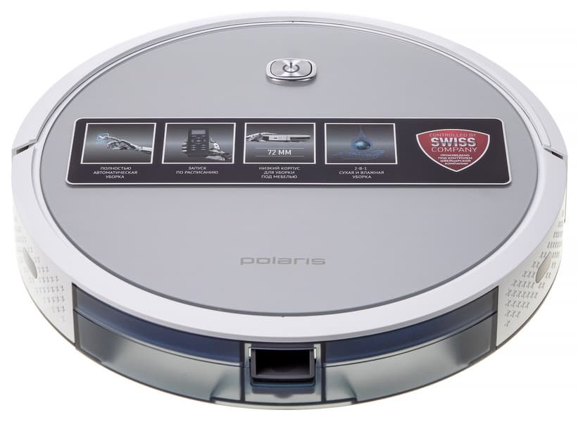 Polaris PVCR-1226 управляется единственной кнопкой на верхней панели. Первое нажатие запускает уборку в автоматическом режиме, второе приостанавливает ее.