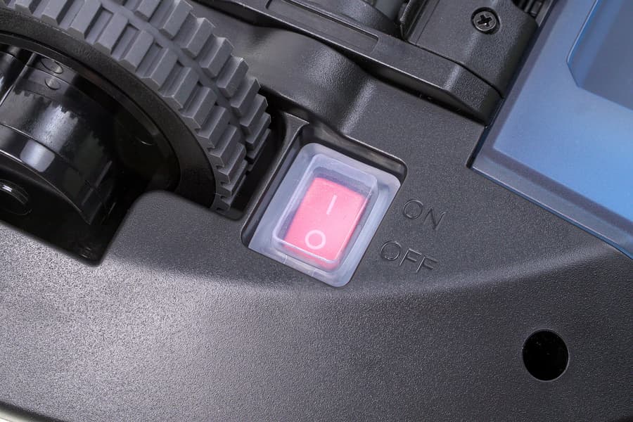 Длительное нажатие на кнопку переводит устройство в спящий режим. Включение и выключение пылесоса осуществляется при помощи закрытой силиконовой накладкой красной клавиши на нижней панели.