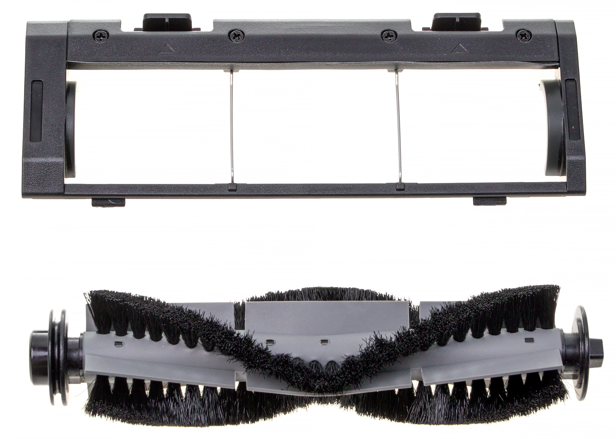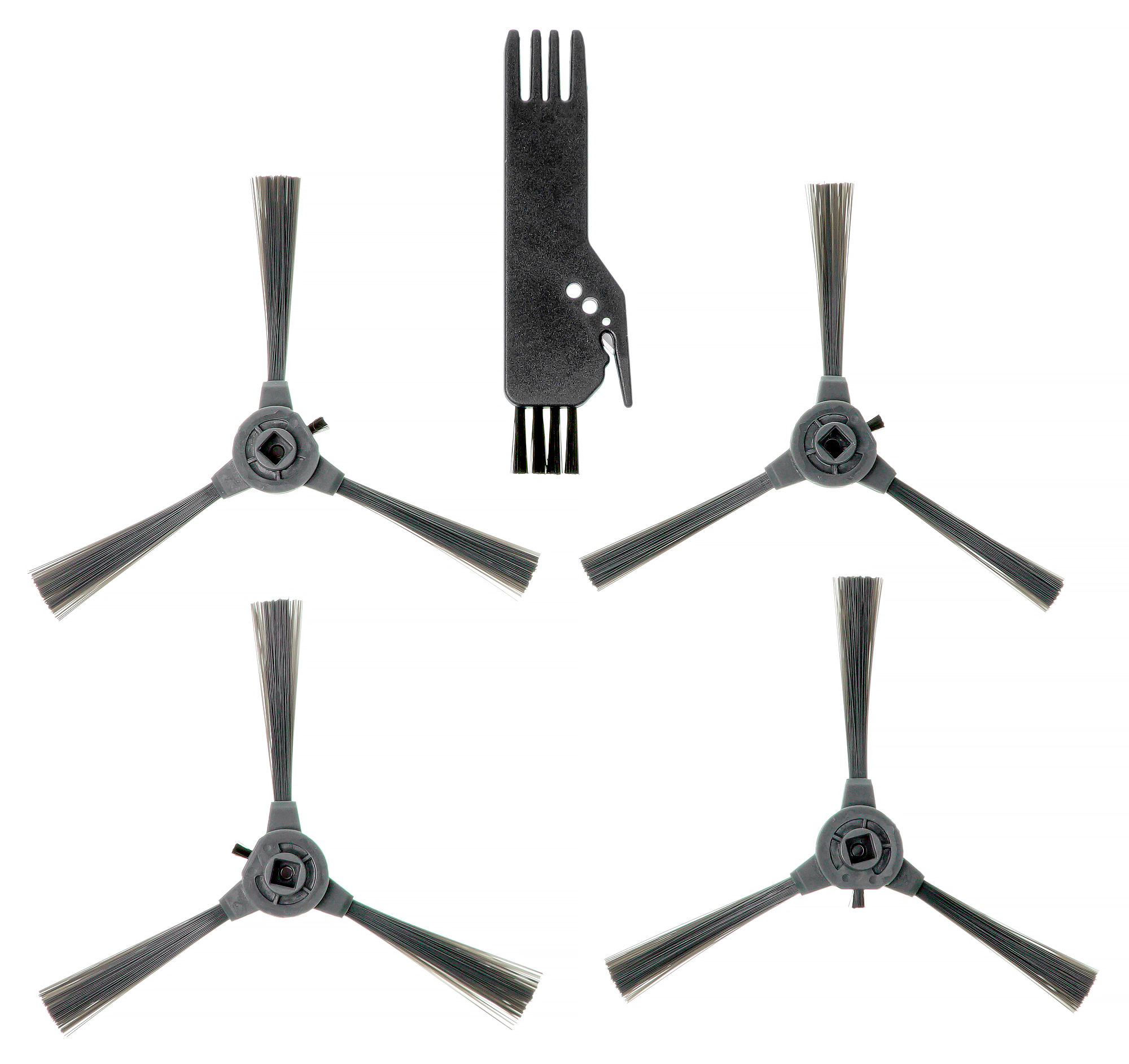 Боковые щетки пылесоса чуть различаются по направлению щетины. В комплекте с устройством идут две для левой и две — для правой стороны.