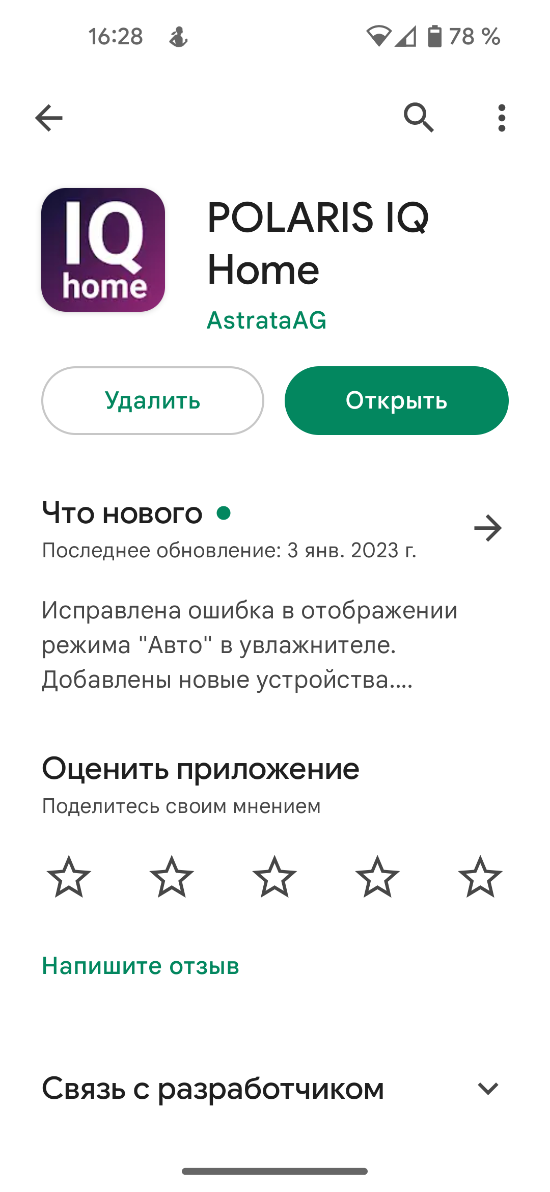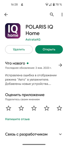 Для использования с пылесосом PVCR 1226 Wi-Fi IQ Home Gyro производитель предлагает уже знакомое нам приложение Polaris IQ Home (Astrata AG), объединяющее все умные приборы компании в единую экосистему. На момент создания обзора рейтинг программы составил 4.7 (свыше десяти тысяч отзывов, более 100 тысяч скачиваний) — ее популярность растет, а средняя оценка остается стабильно высокой.