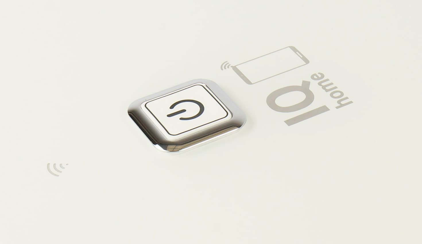 На глянцевой верхней панели, помимо логотипа производителя, мы видим управляющую прибором кнопку, которую подсвечивает цветной светодиод, и индикатор активности беспроводного интерфейса.