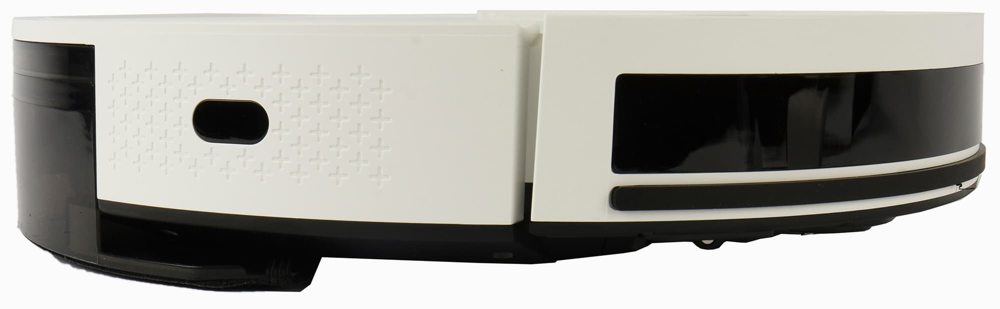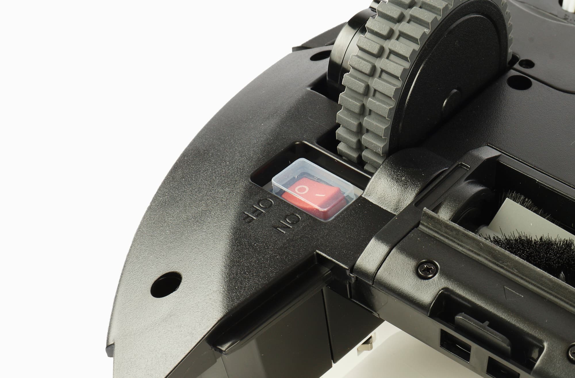 «Глаза» пылесоса скрыты за ИК-прозрачным темным стеклом, под которым установлена полоса пористой резины, оберегающая прибор и мебель от повреждений при столкновениях. Две дополнительные пары сенсоров в овальных окошках «смотрят» в заднюю полусферу прибора.