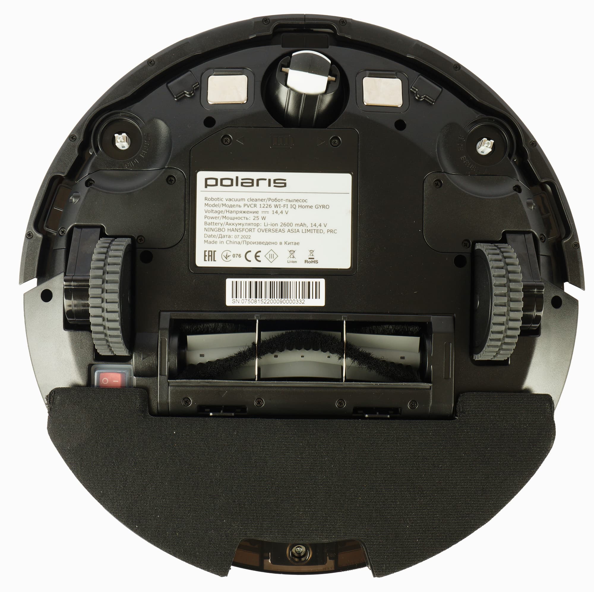 У ходовой части Polaris PVCR 1226 традиционная компоновка: два ведущих колеса по бокам и сферическое опорное — в передней части корпуса. Подвеска ведущих имеет шаг от 7 до 35 миллиметров, что позволяет роботу легко одолевать пороги и неровности покрытия, а сами колеса снабжены выраженным резиновым протектором, призванным исключать пробуксовку на гладком полу.