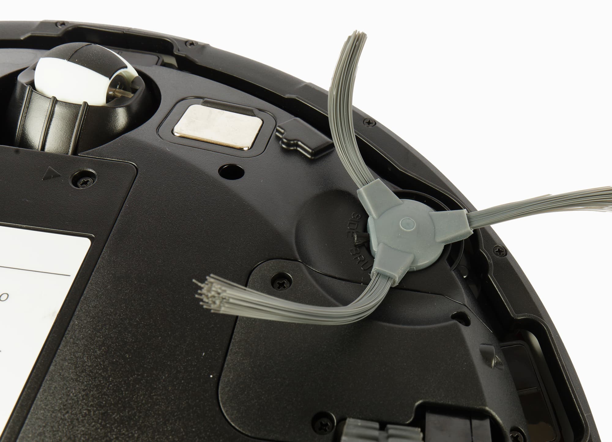 Перед началом уборки не забудьте боковые щетки в коробке. Их надо поставить на посадочные места — поскольку они одинаковые, задача упрощается.