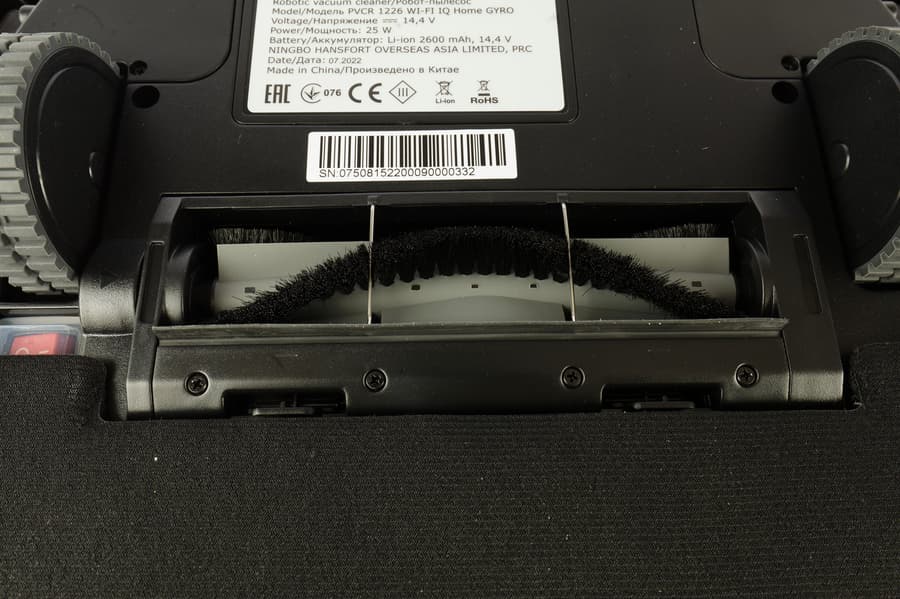Содержать PVCR 1226 в порядке довольно просто: пластиковые части вытирать слегка влажной тряпкой, вытряхивать пылесборник после каждой уборки и не забывать про центральную щетку — если на нее намотались длинные волосы, шерсть, нитки и т. п., надо сразу же остановить работу и убрать засор. В противном случае может пострадать отдельный электропривод валика, который включается одновременно с мотором пылесоса.