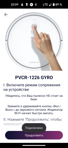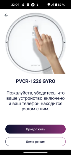 Автоматически пылесос не обнаруживается. Воспользовавшись ручным выбором из недлинного списка, мы получаем краткую инструкцию по подключению прибора.
