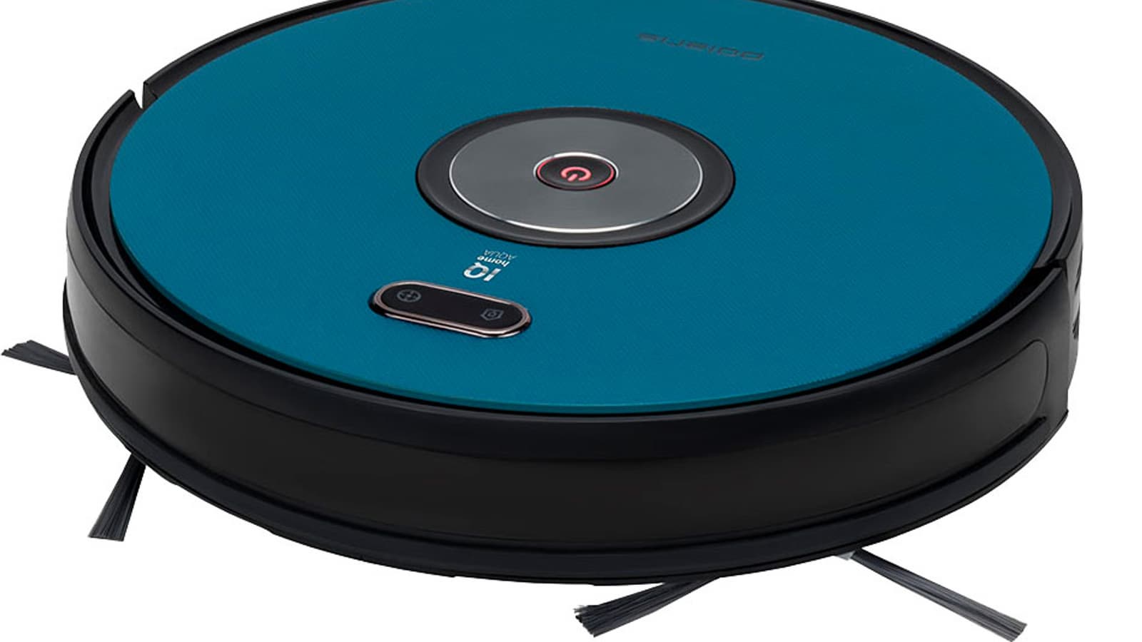 В выключенном состоянии на верхней панели выделяется механическая кнопка (вкл./выкл.) и кнопки возврата на базу (с иконкой-домиком) и уборки по спирали (с иконкой-прицелом).