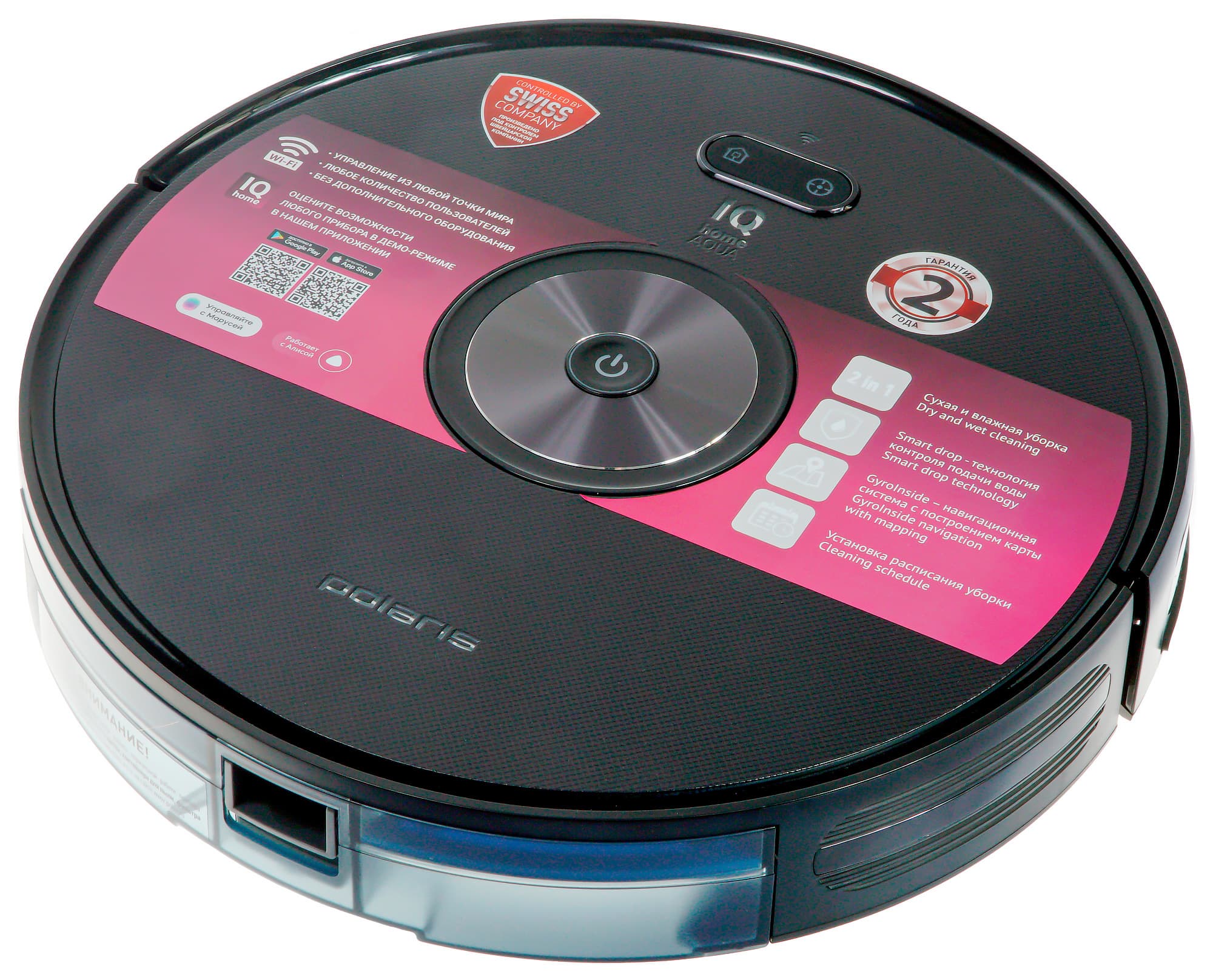 Робот-пылесос Polaris PVCR 3200 IQ Home Aqua производит как сухую, так и влажную уборку, что позволяет значительно облегчить поддержание чистоты в доме. В отличие от младших моделей, PVCR-3200 имеет возможность дистанционного управления по Wi-Fi — с помощью приложения для смартфона. Таким образом, пользователь сможет не только запустить пылесос дистанционно (например, находясь на работе), но и «порулить» гаджетом в режиме ручного управления.