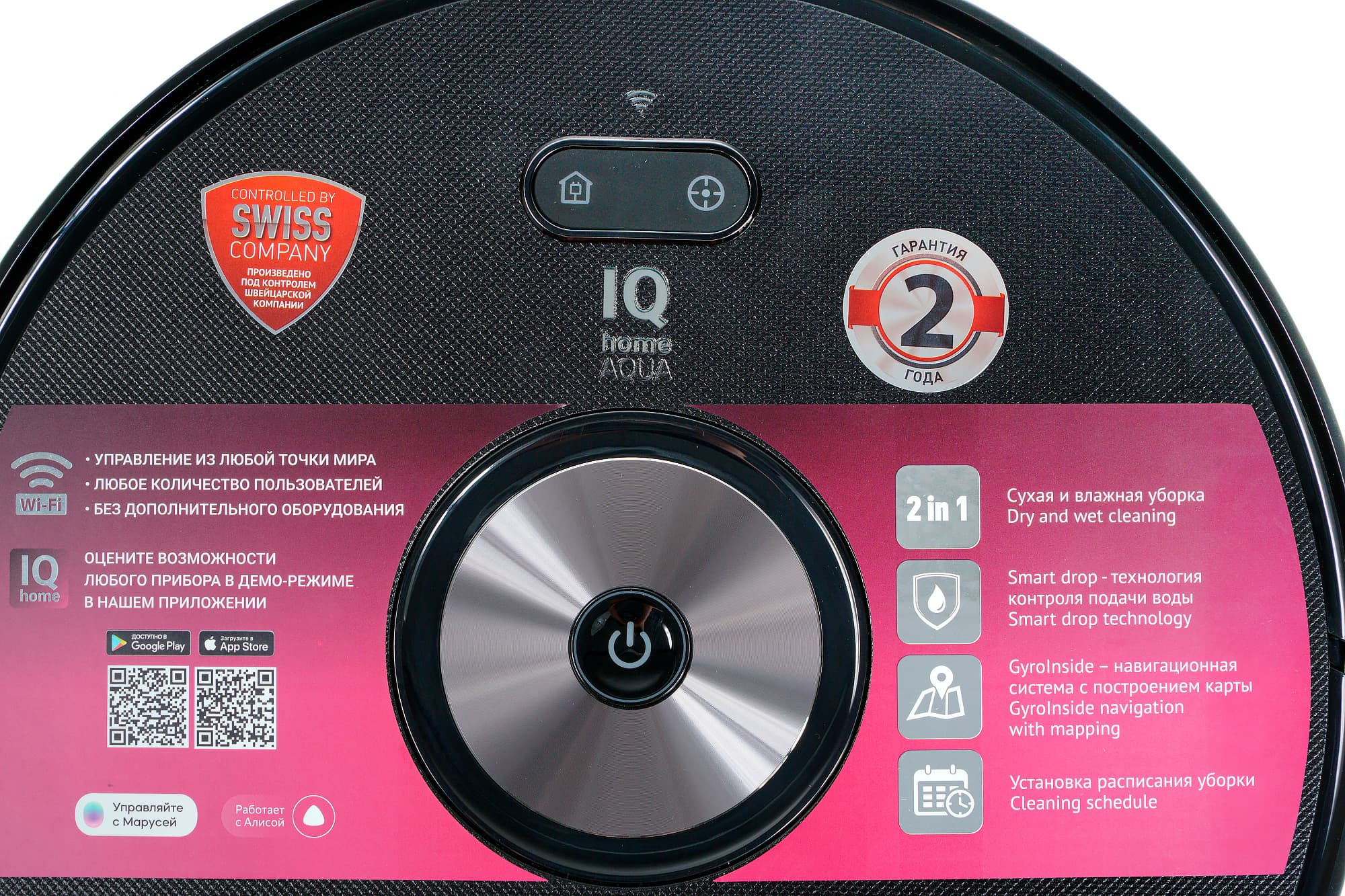 В приборе предусмотрена защита от детей (блокировка кнопок), которая легко включается путем удержания двух кнопок на корпусе робота, а также в приложении IQ Home. При срабатывании функции защиты от детей в приложение приходит информационное push-уведомление.