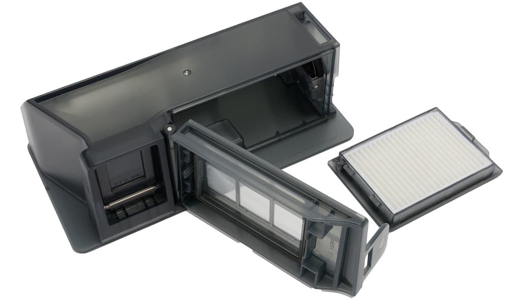 Фильтрация осуществляется с помощью модуля тонкой очистки, состоящего из частой сетки из синтетического материала и прямоугольного HEPA-элемента. Их придется время от времени извлекать и чистить вручную.