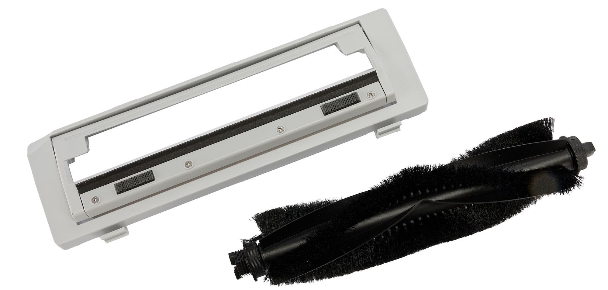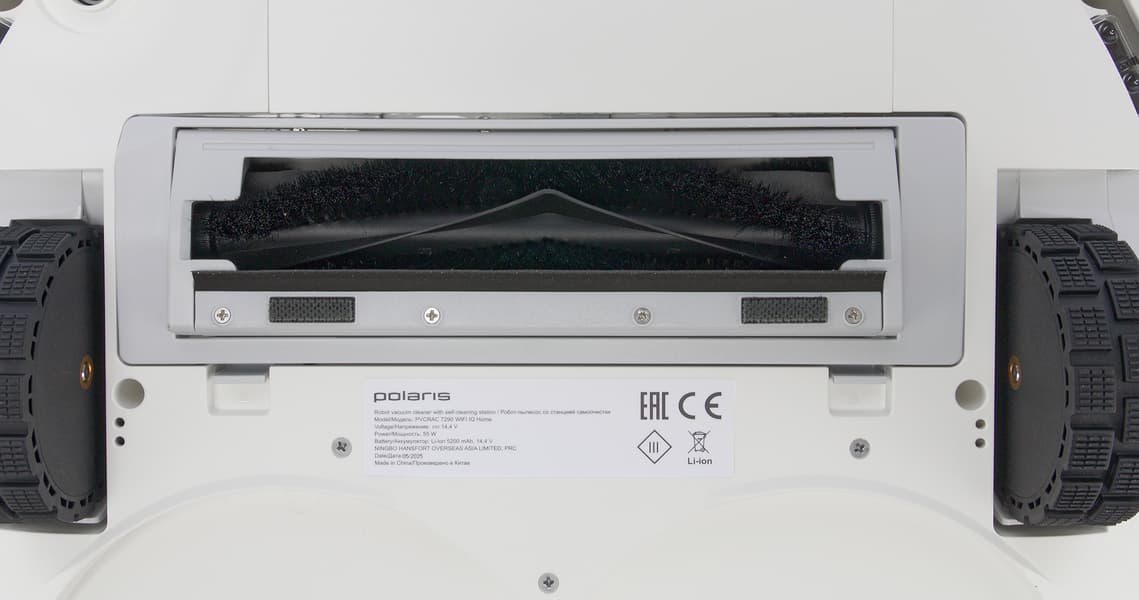 Центральная щетка имеет привычные ряды щетины, чередующиеся с мягкими V-образными ламелями. Рамка крепления щетки не имеет перемычек или каких-либо других препятствий, защищающих щетку от наматывания ниток, проводов, шнурков и тому подобных вещей. Сама рамка для наилучшего контакта с полом подпружинена, имеет резиновый уплотнитель и две мягкие наклейки (чтобы не царапать паркет или другое твердое напольное покрытие).