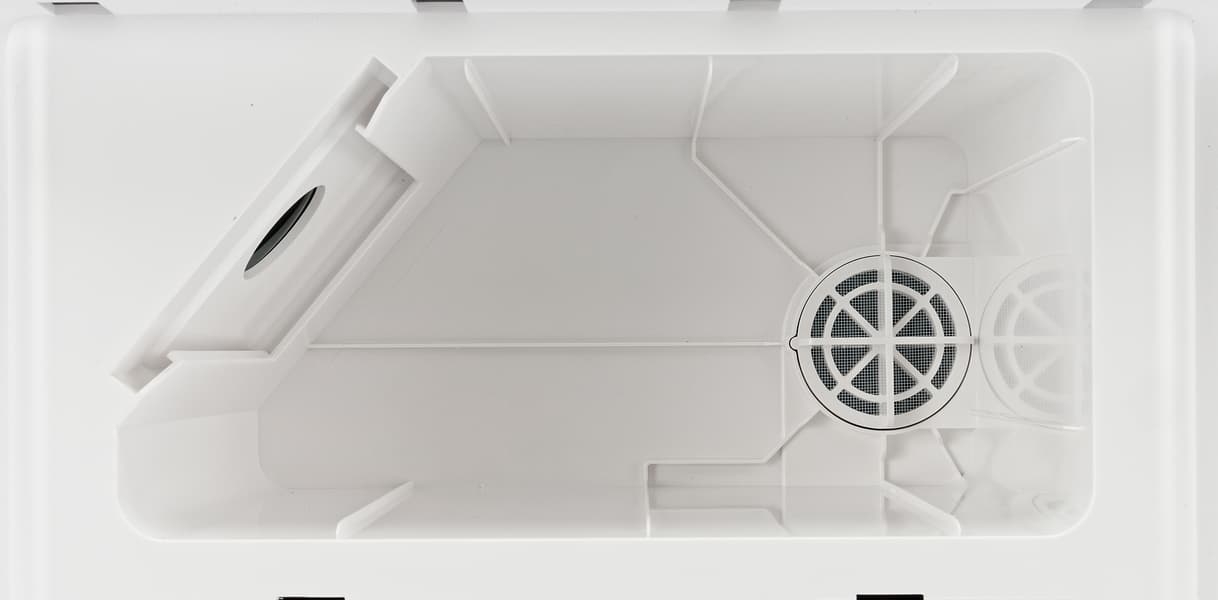 Под верхней откидной панелью находится контейнер для сбора мусора.