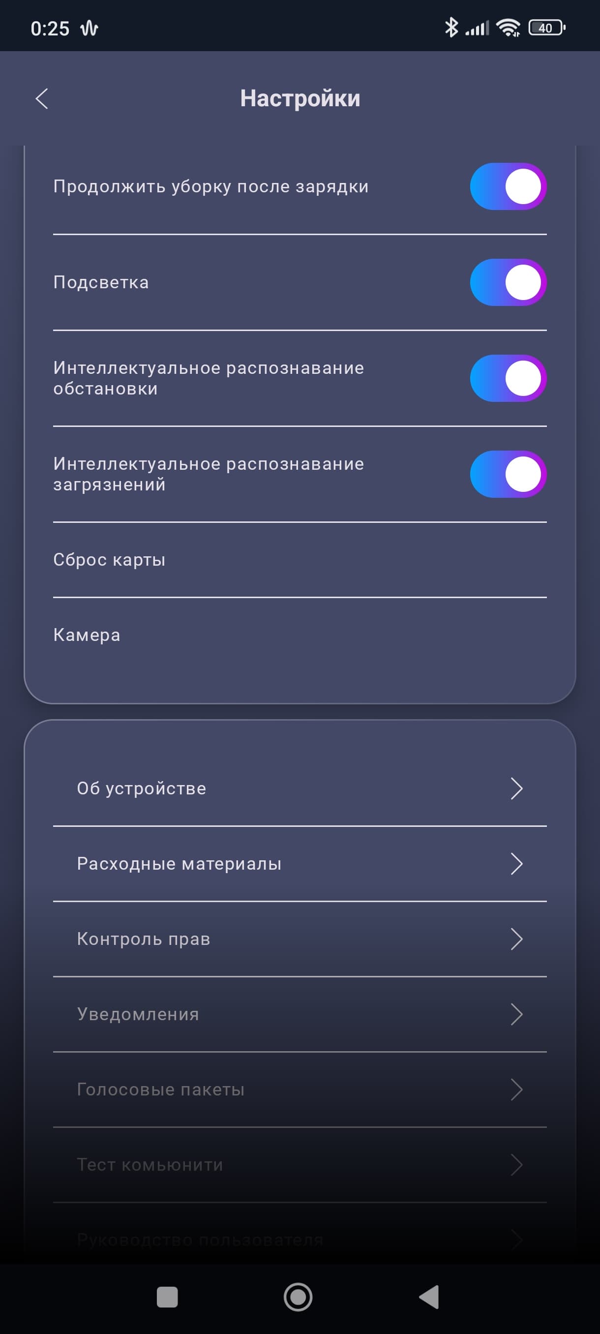 Наконец, для любителей подсматривать за домашними животными и членами семьи, есть возможность включить камеру и посмотреть через приложение, кто чем занят дома. И порулить роботом вручную.