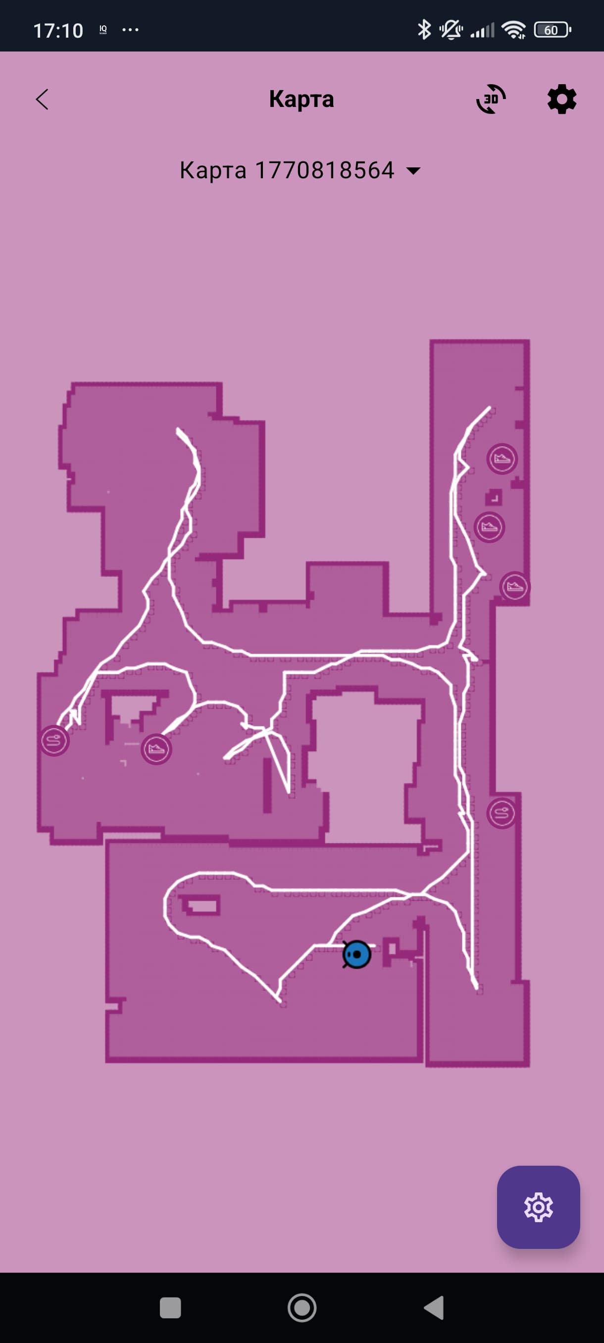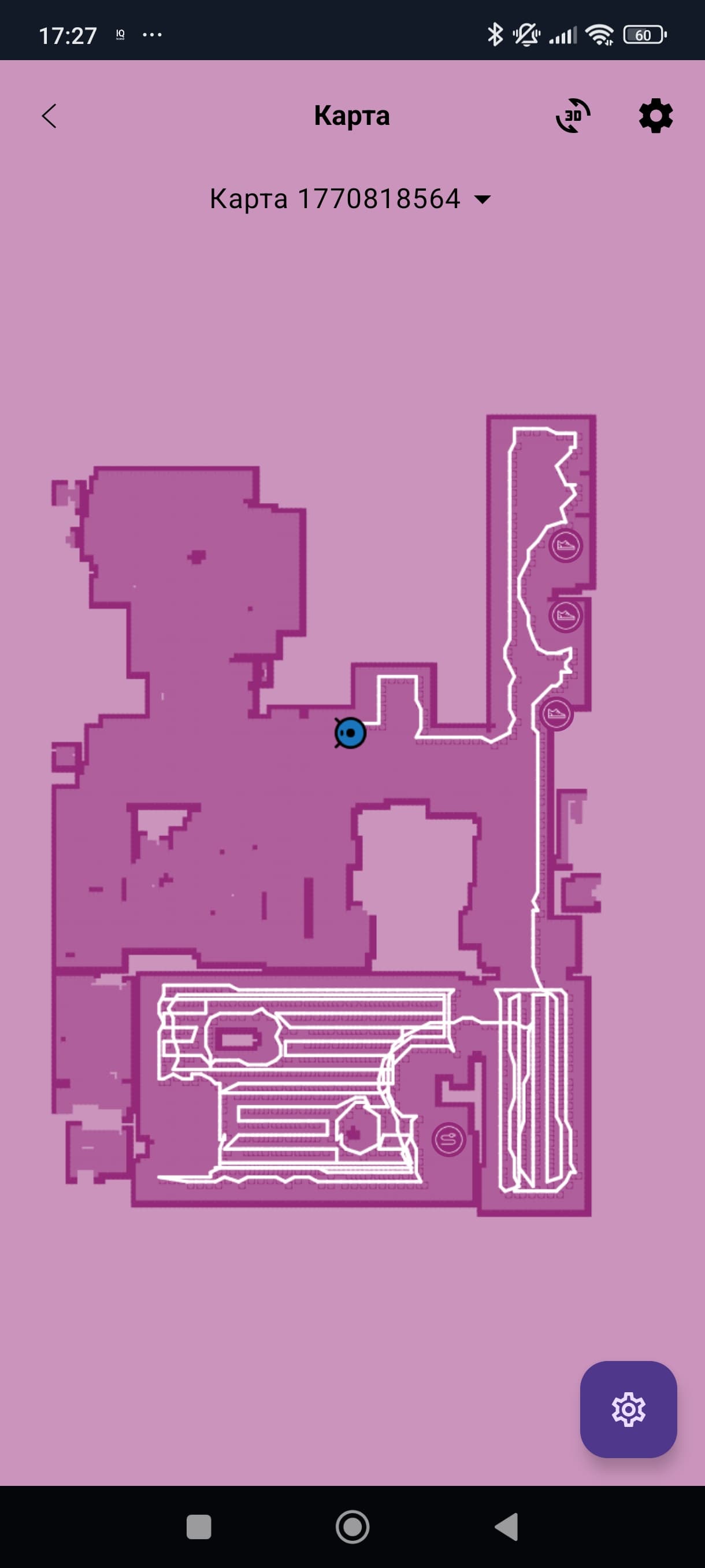 Карта помещения составляется прямо в процессе уборки. Вот как выглядит наше небольшое тестовое помещение:
