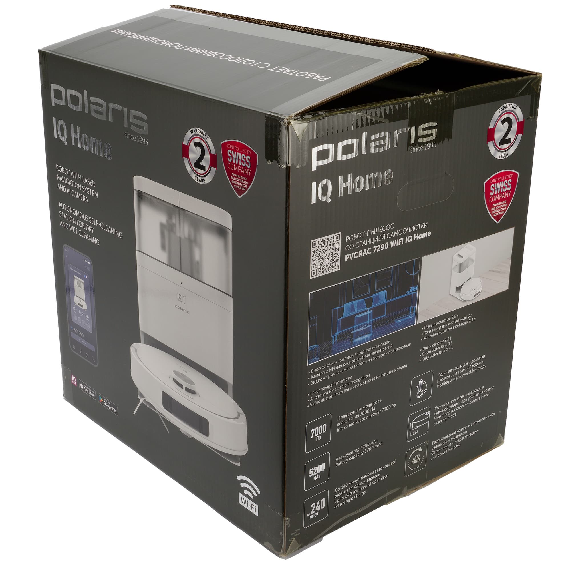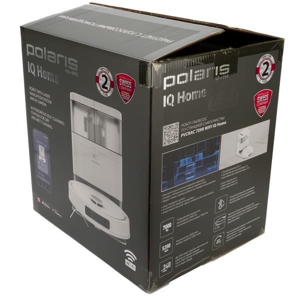 Робот-пылесос Polaris PVCRAC 7290 Wi-Fi IQ Home — это модель среднего уровня, выпущенная под хорошо нам знакомым брендом. Заявленный набор функций стандартный: сухая и влажная уборка, сброс сухого мусора в базу, самоочистка и сушка насадок для влажной уборки. Также у этой модели имеется лазерная навигация и «камера с ИИ» для распознавания препятствий.