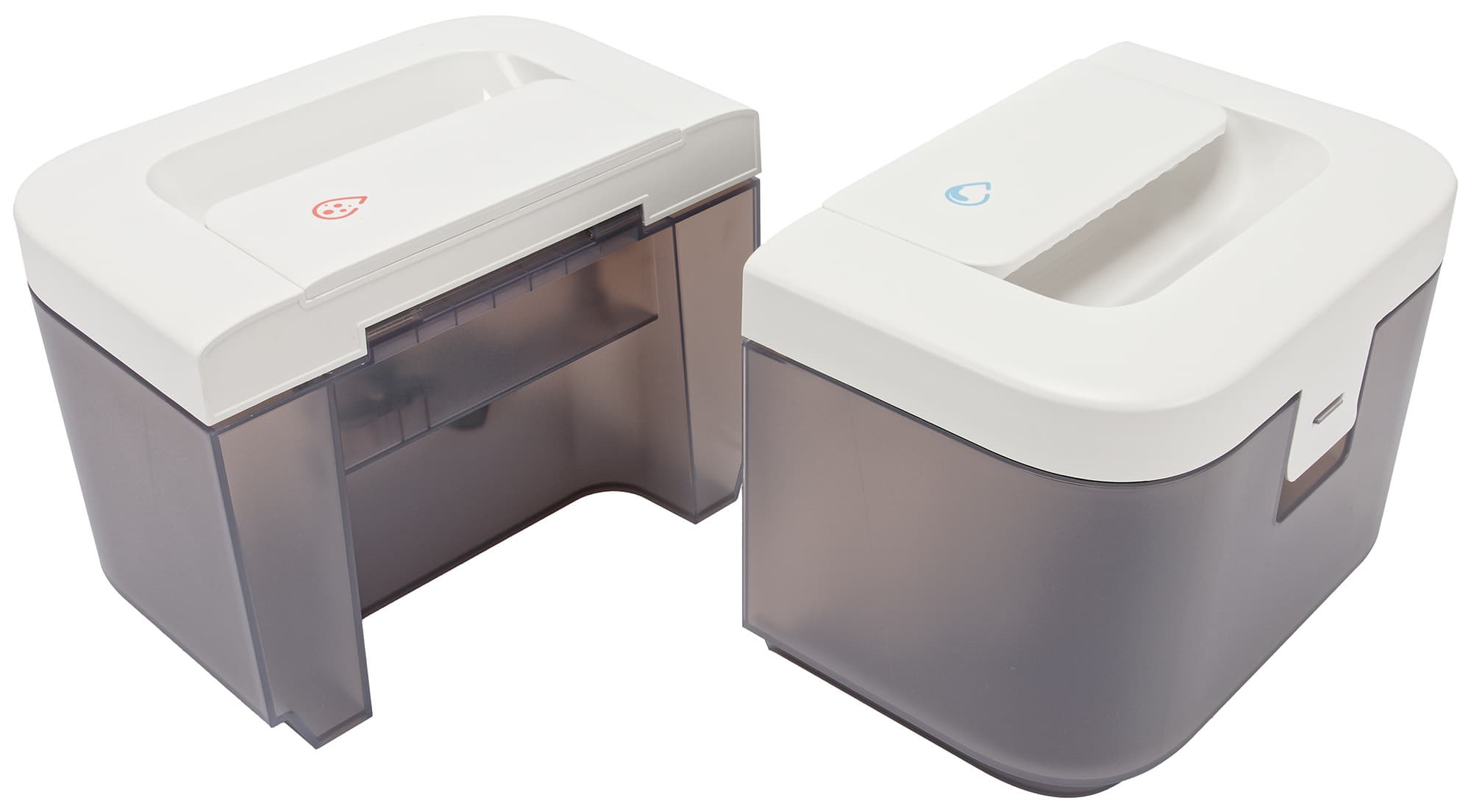 Контейнеры сделаны из достаточно сильно затемненного пластика и имеют откидную ручку для удобства переноски.