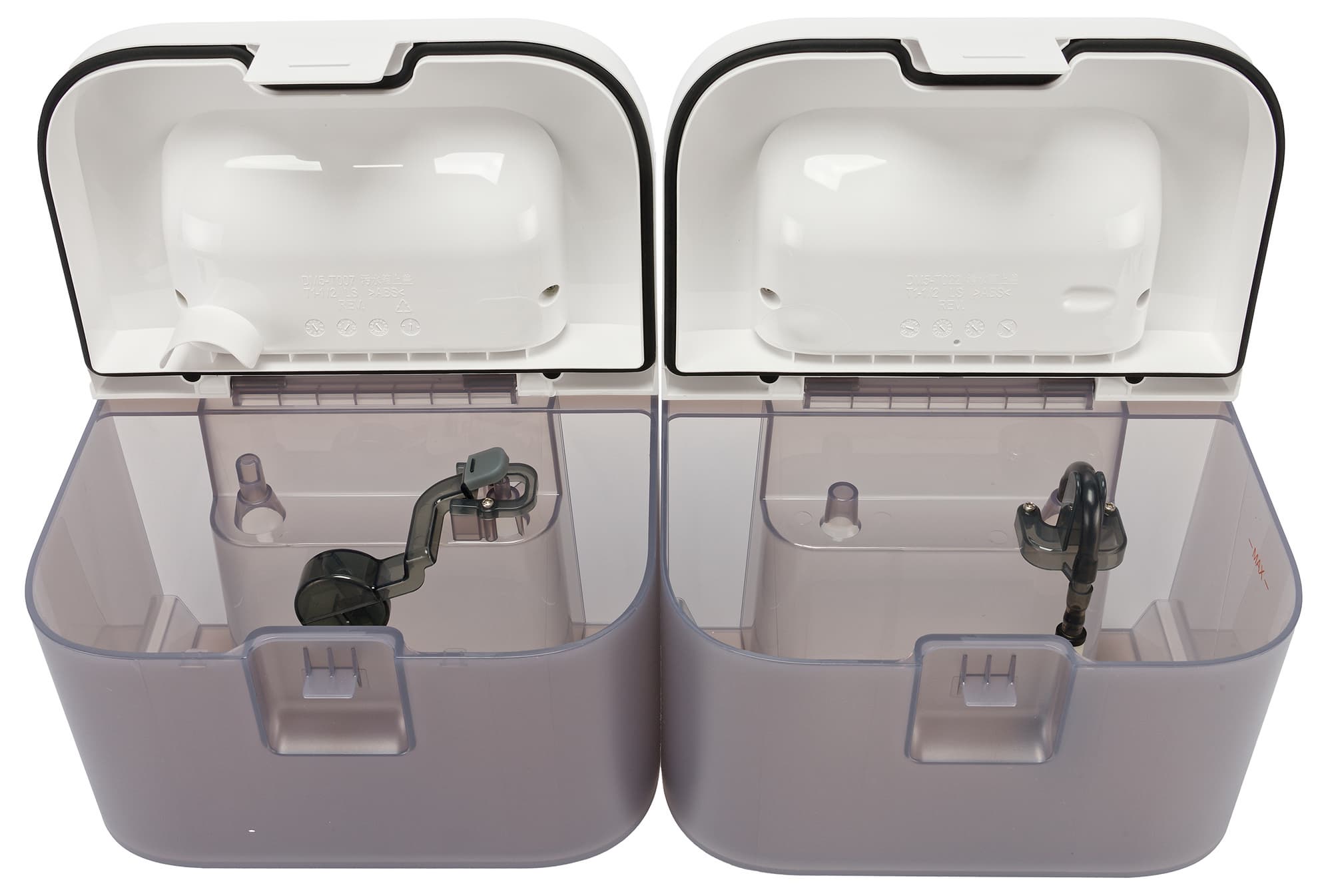 Внутри, как водится, расположены датчики заполнения (для грязной воды) и опустошения (для чистой воды) соответственно.